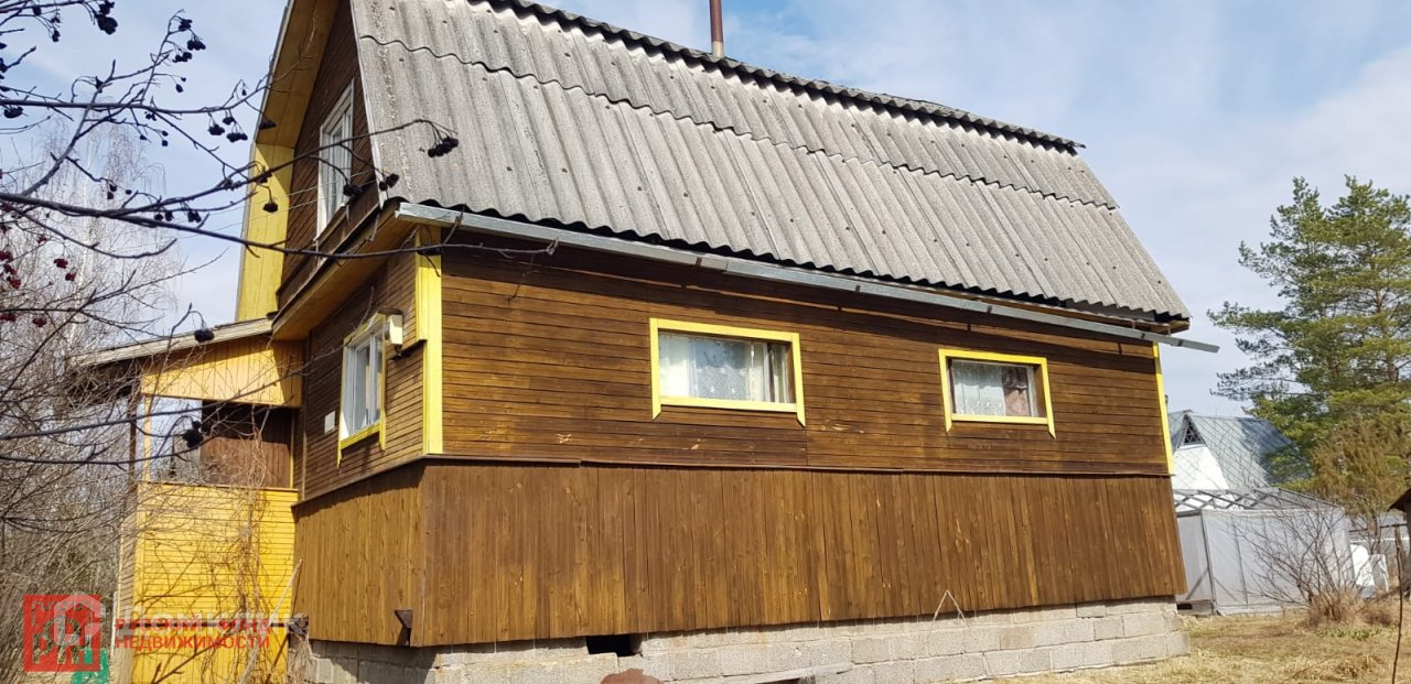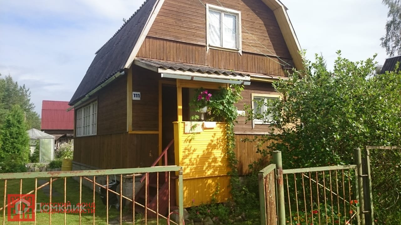 №306936 Аккуратная семейная дача для небольшой семьи. Дом крепкий, на высоком фундаменте, стены утеплены,  можно использовать в зимний период, есть печь. На первом этаже спальня, кухня, коридор, уютная веранда, второй этаж мансарда под отделку. Участок утопает в зелени, плодовые деревья, кустарники, есть  2 теплицы, так же летний душ + бак с подогревом, дровяник, сарай, туалет.  Территория  участка огорожена, есть заезд для авто. Садоводство обжитое, доброжелательные соседи. Поселок Вырица с красными берегами и песочными пляжам в 5 км. Ходит автобус.