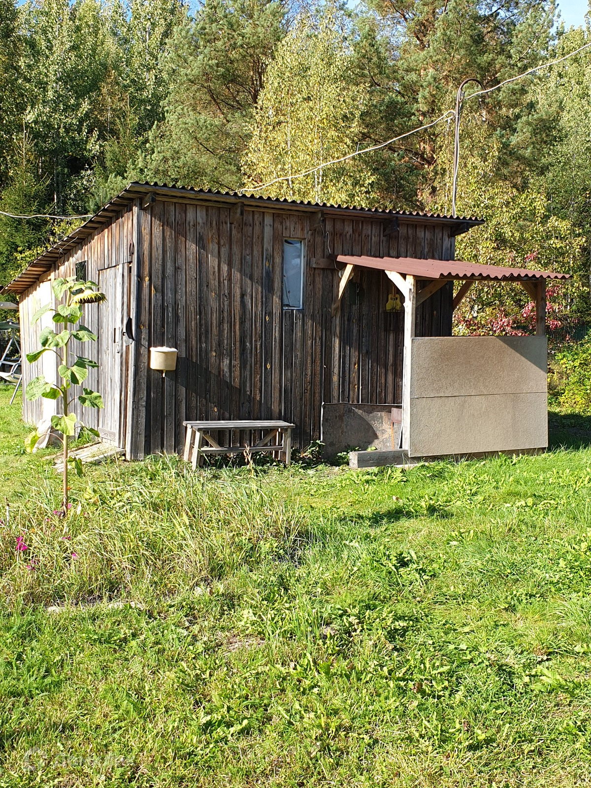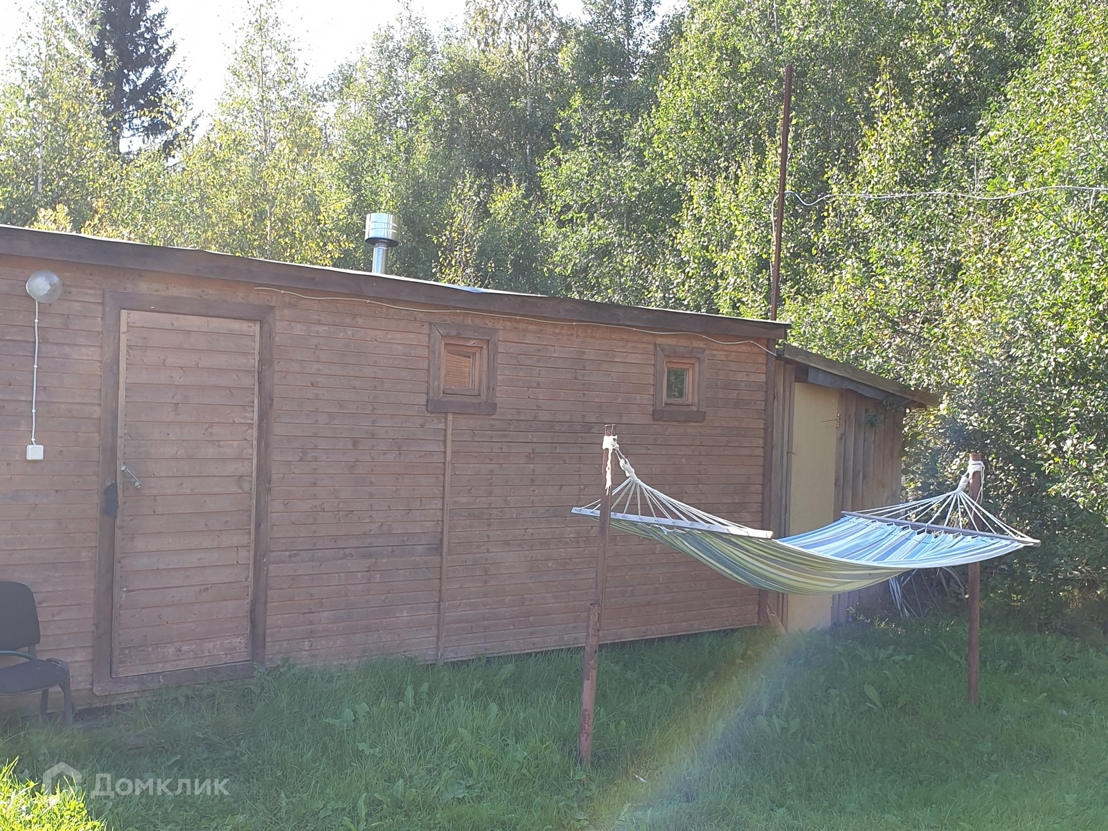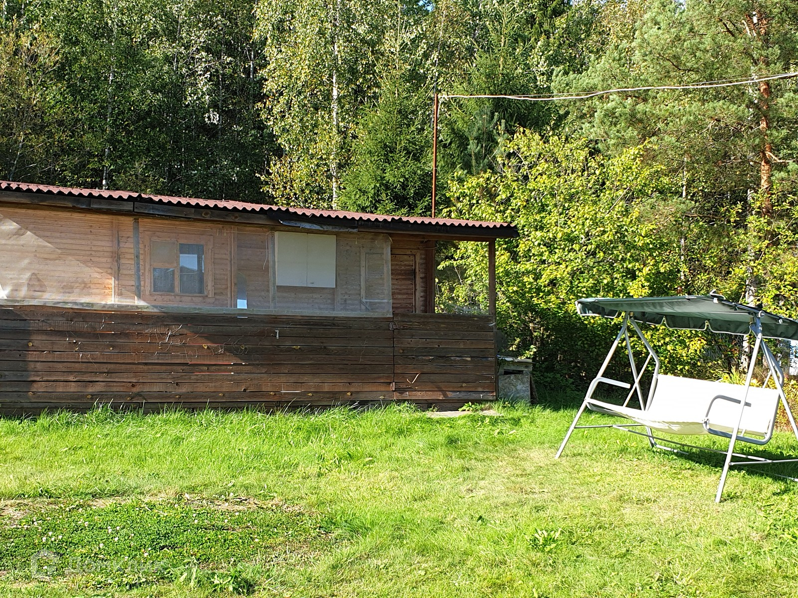 - утеплённая (50 мм.) бытовка 5,8х2,3 м. с верандой, пригодная для проживания, есть плита с газовым баллоном, можно благоустроить и сдавать на лето;