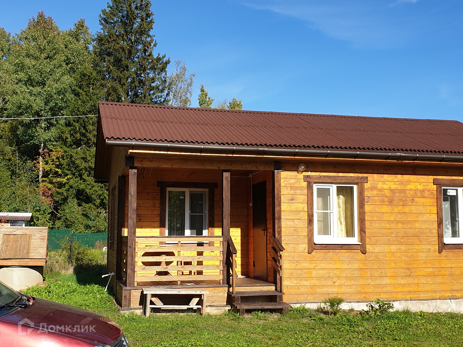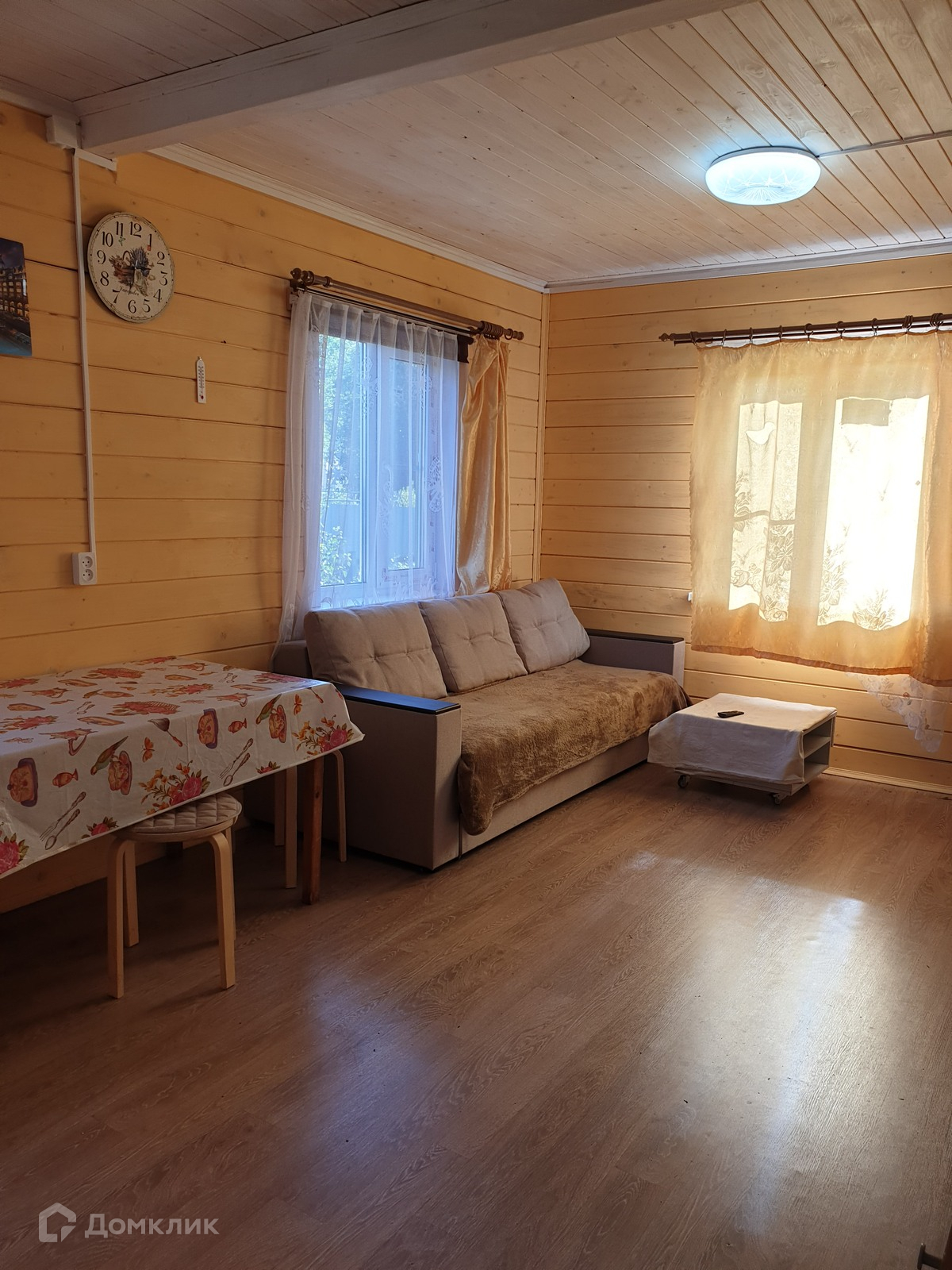 Дом построен по каркасной технологии с утеплением 150 мм (пол, стены и потолок), снаружи и изнутри обшит имитацией бруса. Установлены стеклопакеты.