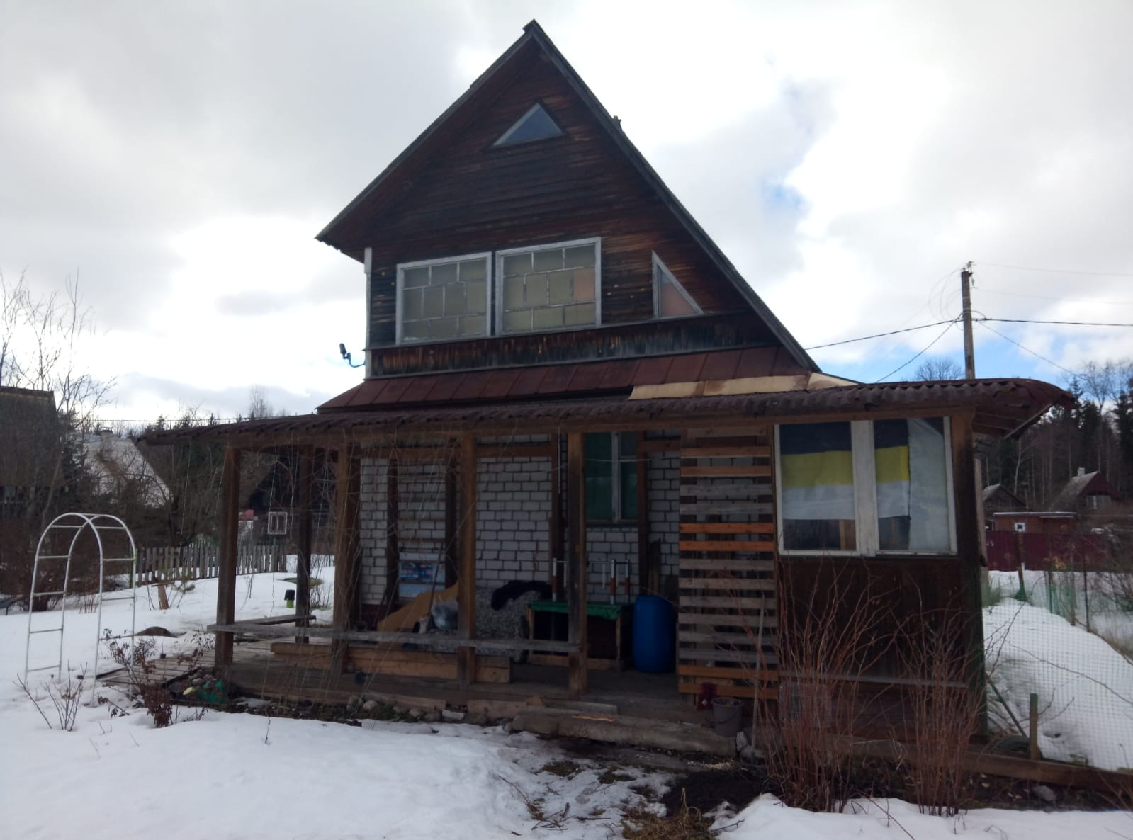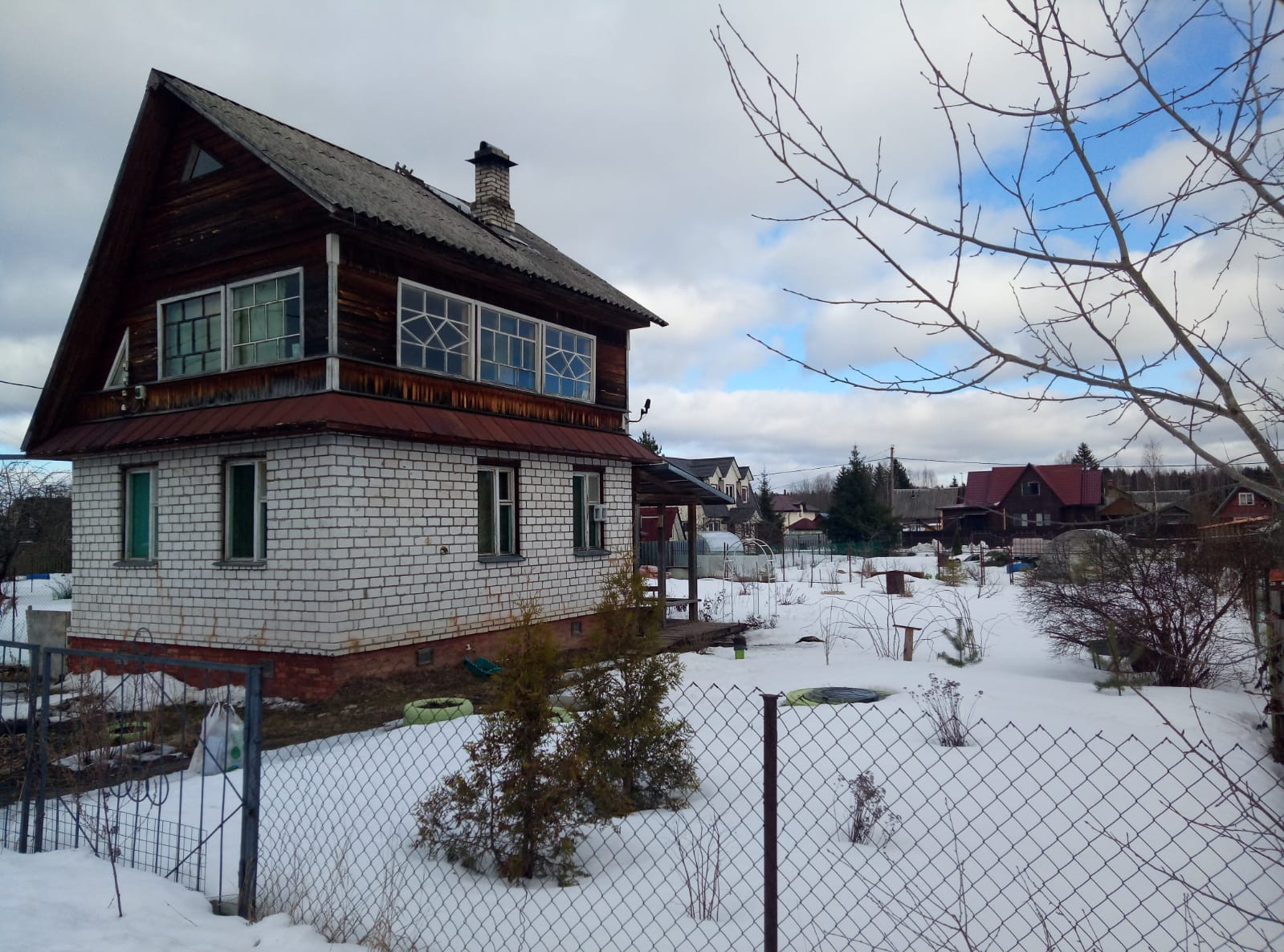 Продам дом общей площадью 74 кв.м. в Гатчинском районе, массив" Ухта" , с.т. " Леноблстрой", До п.Вырица и ж/д станции 6 км., 50 минут на электричке до метро " Купчино". Обжитое садоводство, земли сельхозназначения. На участке( 6 соток ) бревенчатый зимний дом, на мощном , высоком фундаменте ( ленточный, бетонный) .Есть мансардный этаж, площадью 28 метров без ремонта. На первом этаже веранда 8м. х 2.6 м., крыша ломаная, шифер. В доме подключены все коммуникации ( вода, душевая, туалет), септик из ж/б колец, скважина 10м. имеется кирпичная печка с духовкой, электричество 15 кВт. Тихое место, рядом лес ( грибы, ягоды) Доброжелательные соседи, многие живут постоянно. Автобусы до Вырицы и до Сиверской, на территории садоводства есть сезонный магазин.