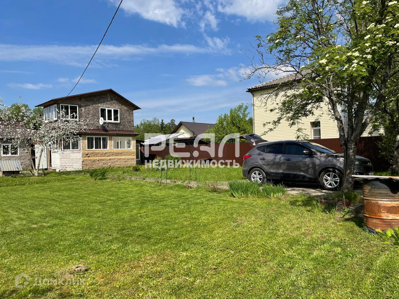 Участок 6,21 сотка, ровный, сухой, огорожен забором... На участке расположены : беседка, баня кирпич ( в бане есть комната отдыха с камином), имеется пристроенный к дому хозблок.... Имеются места для парковки на 2 машины... Туалет на улице... Есть вторая скважина для полива....