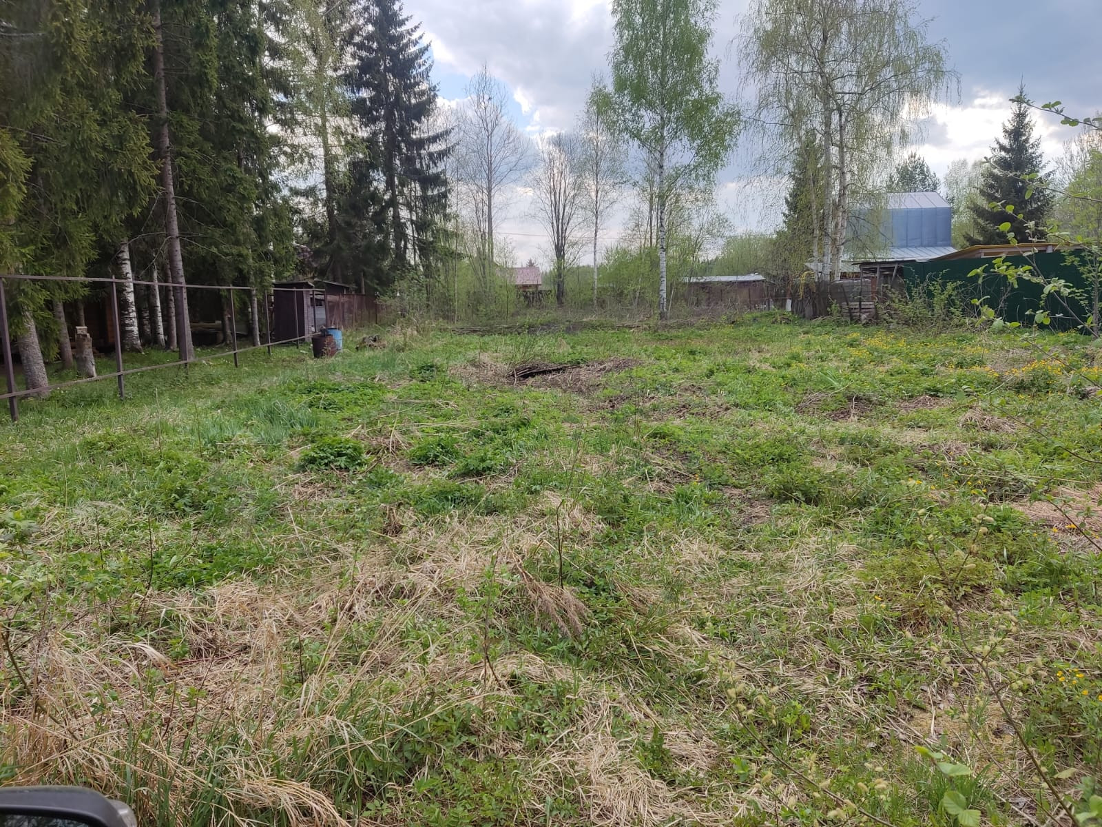 Участок ровный, по периметру, кусты малины и смородины.