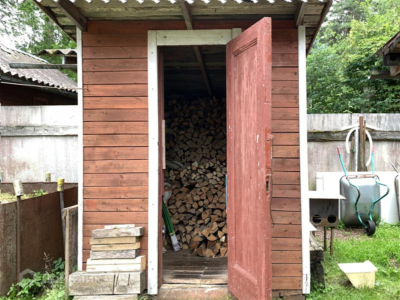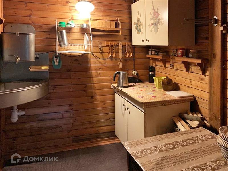Дом из бревна, фундамент на бетонных сваях. Построен в 2000 году, единственный хозяин. Две комнаты, кухня, русская печь с плитой, водопровод с чистой питьевой водой от садоводческой скважины гл. 170 м введен в дом и баню, оборудован подвал для хранения заготовок. Новая электропроводка. Внутренняя отделка деревом с элементами резьбы. Есть колодец с чистой водой.