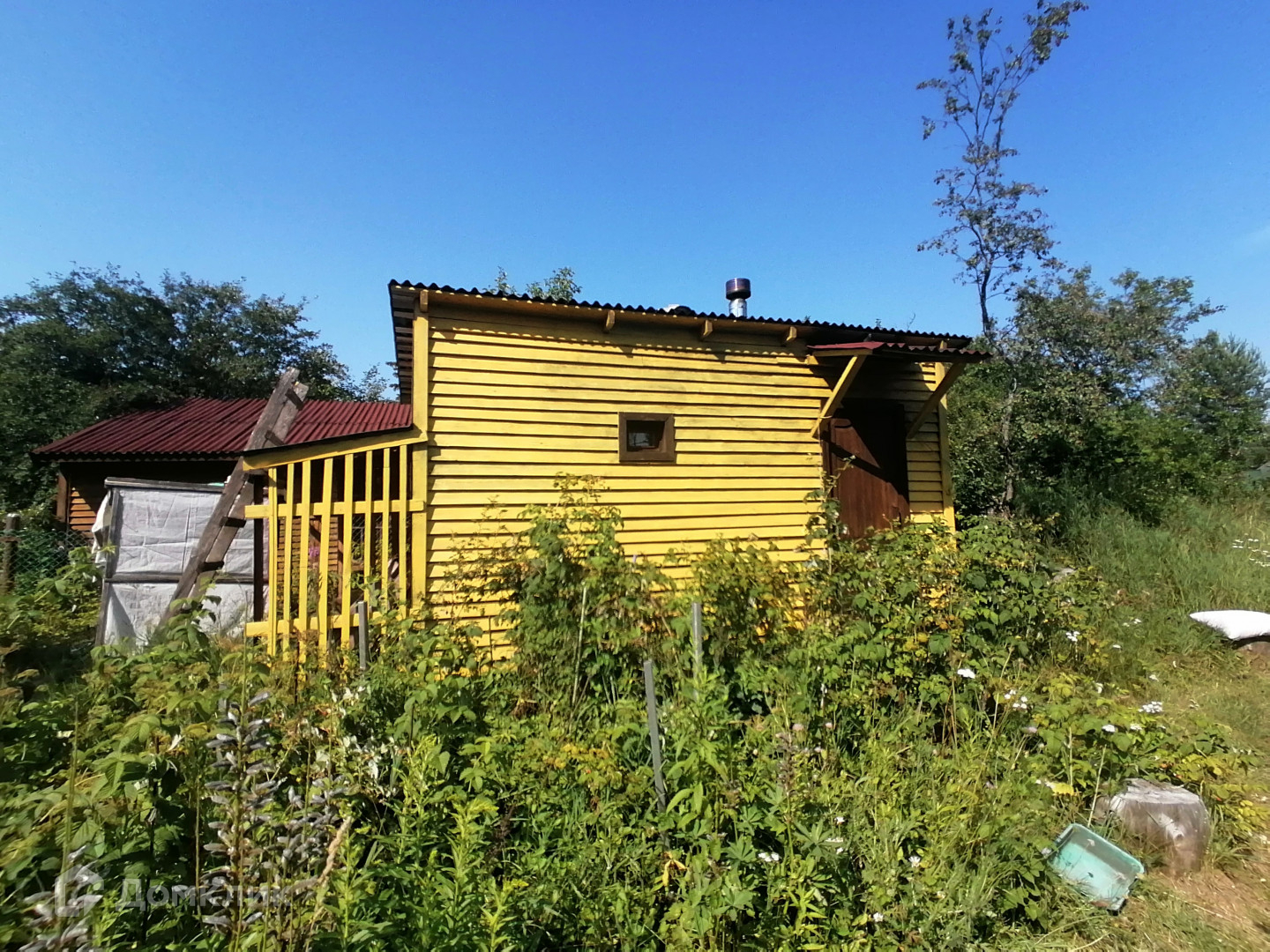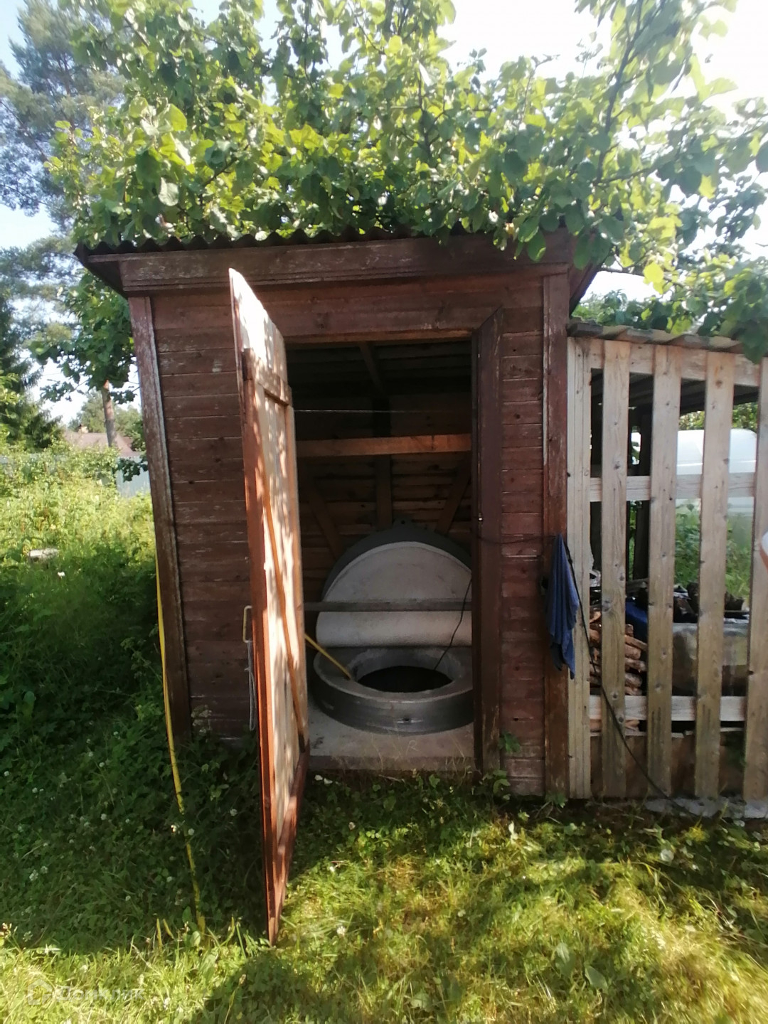 Вокруг участка – забор, есть в одном из домов гараж для машины.