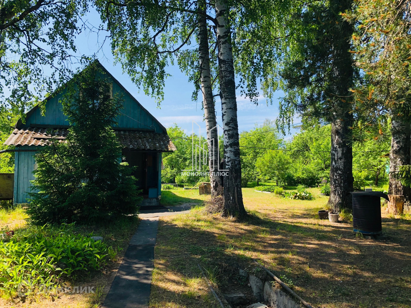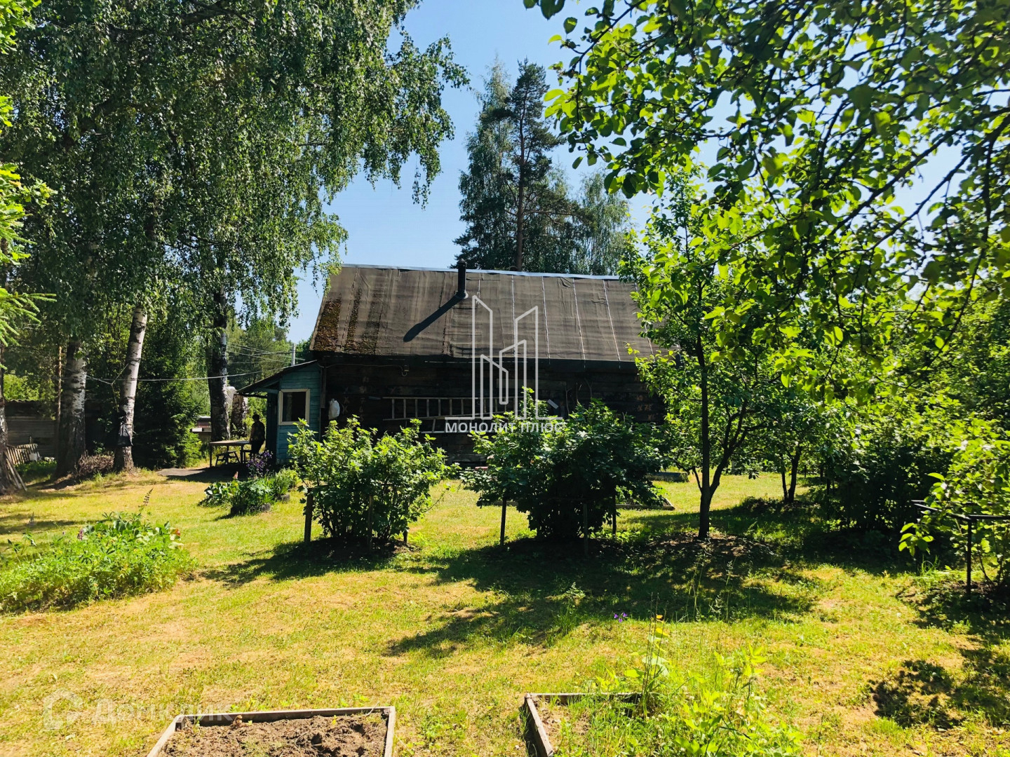 На участке есть баня из бруса размером 3х6м 1990гп., хозблок, теплица, колодец, въезд для авто, парковка.