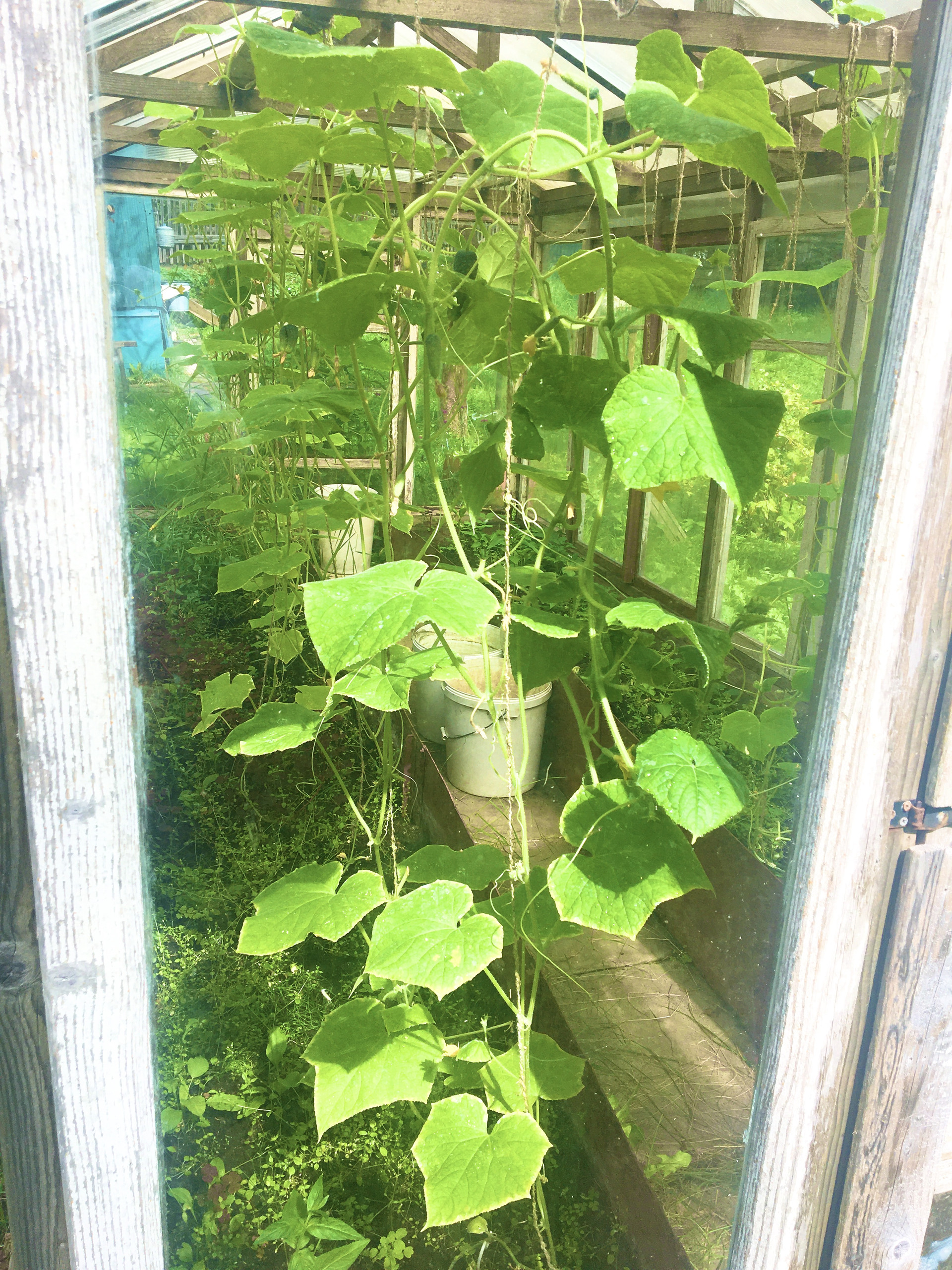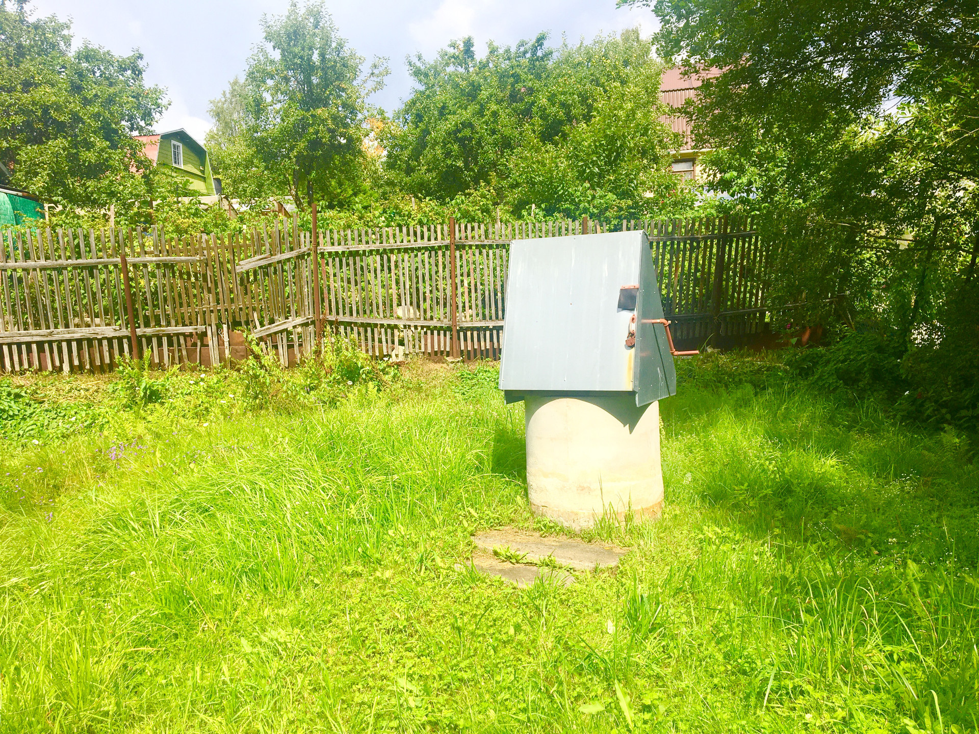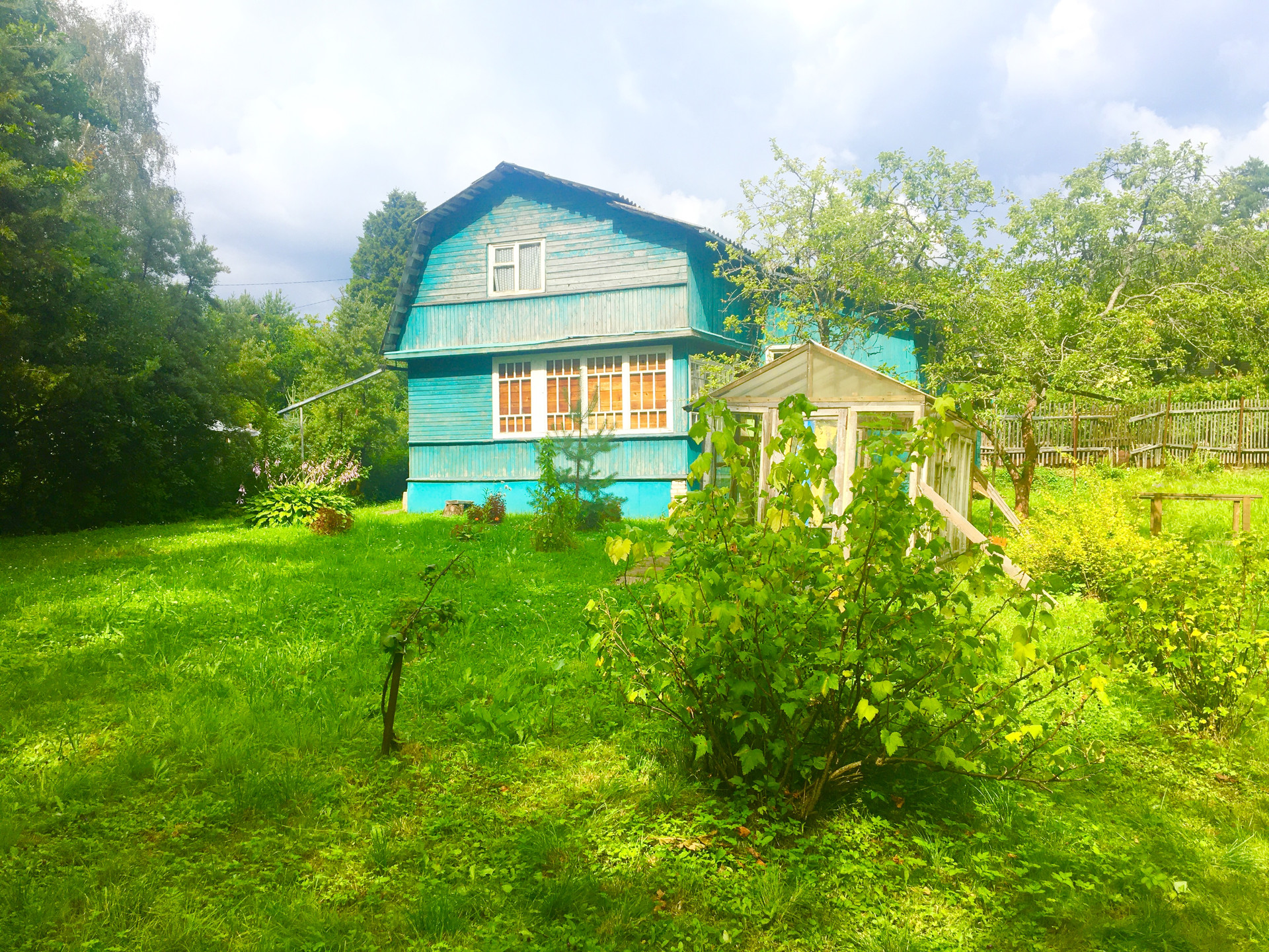 Участок разработан. Есть теплица. Растут яблони, кусты смородины и крыжовника.