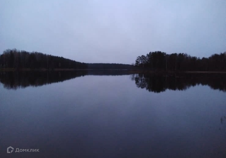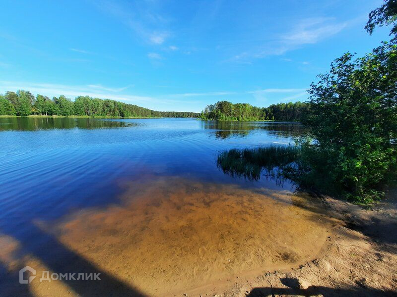 Вокруг участка чистое озеро и зеленая полоса вдоль него.