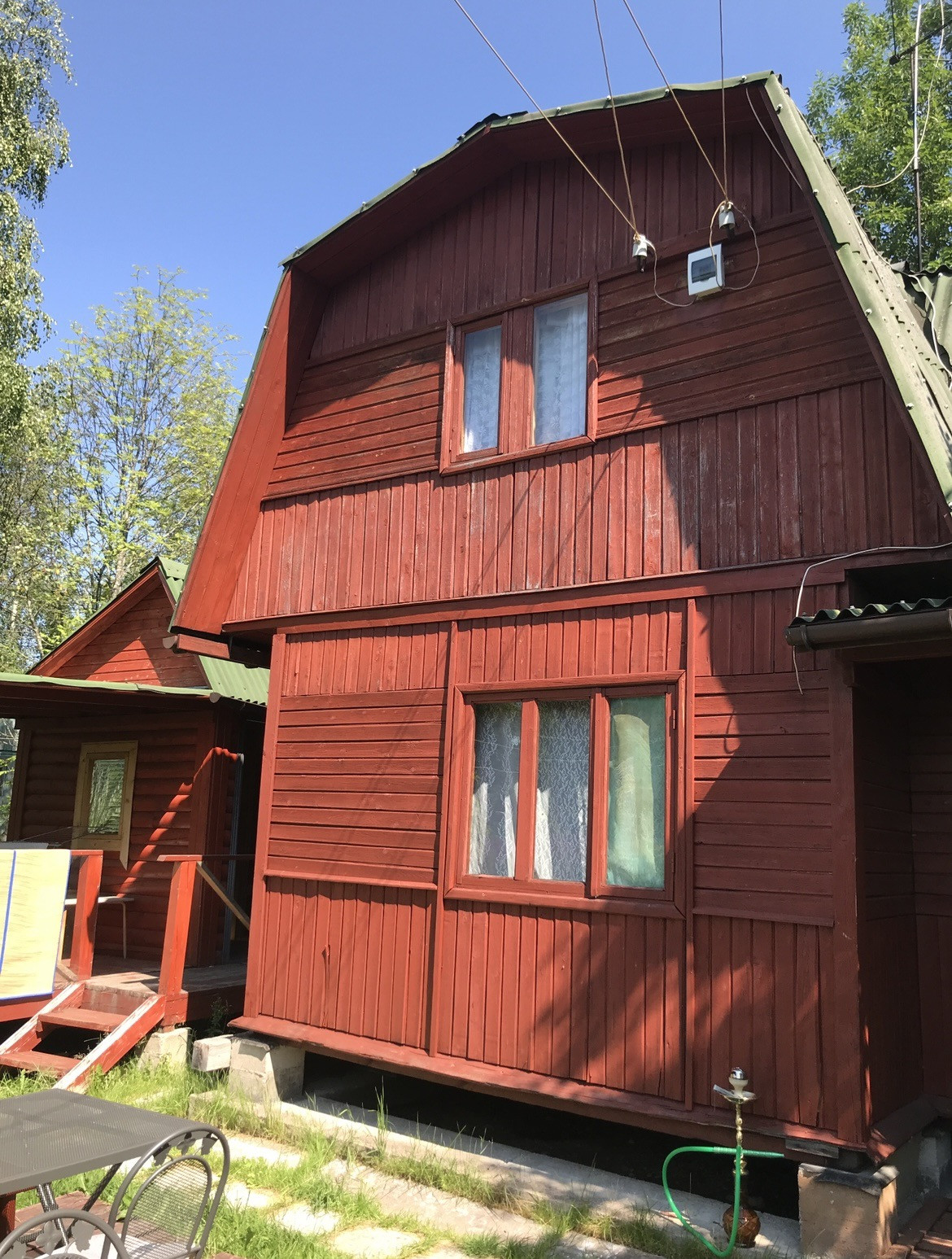 Продается дача. Дом двухэтажный, 5 комнат и кухня. Одна комната из бруса с печным отоплением, остальная часть летняя. На втором этаже 3 комнаты.  Вода в дом проведена, бойлер.