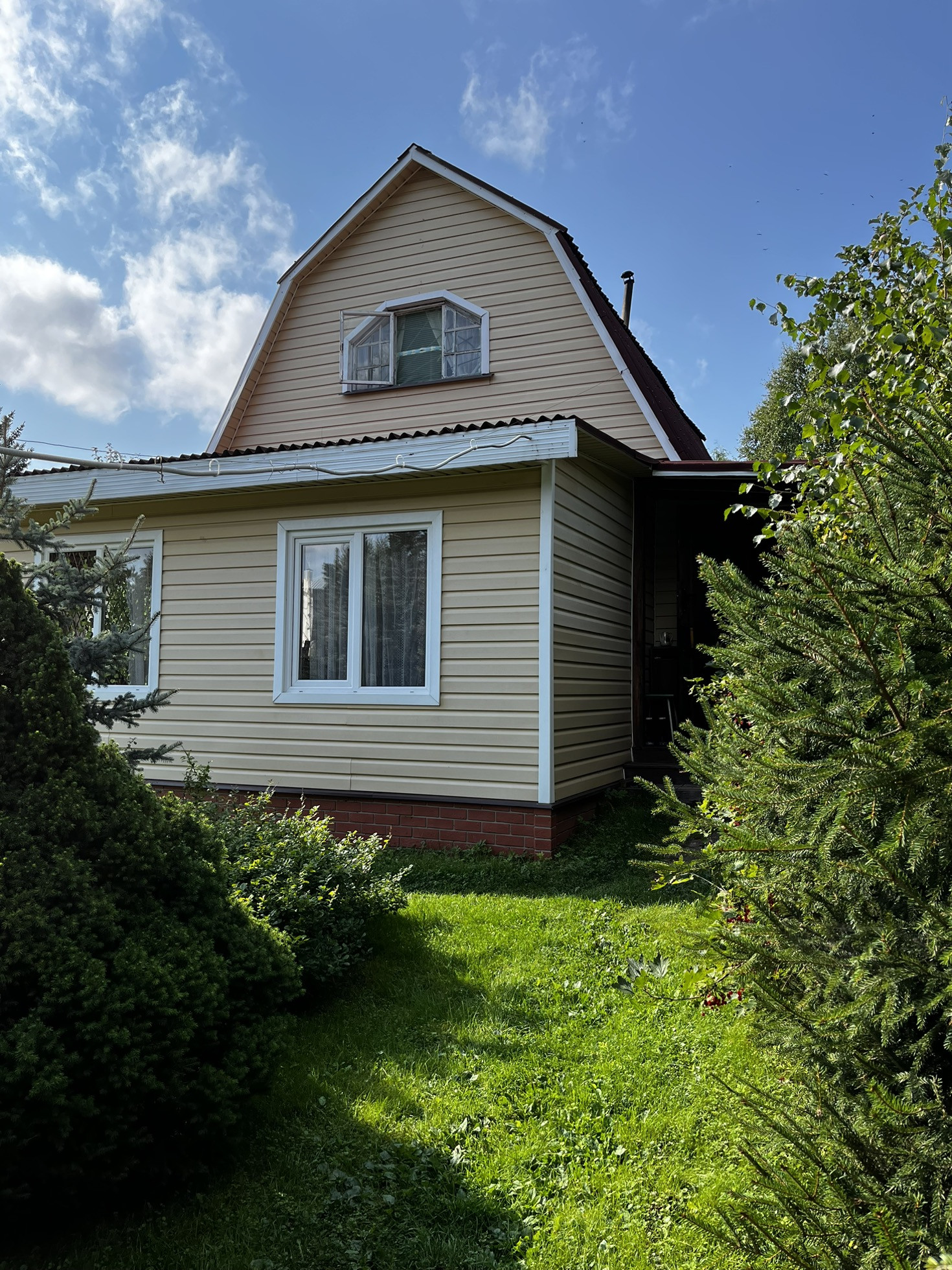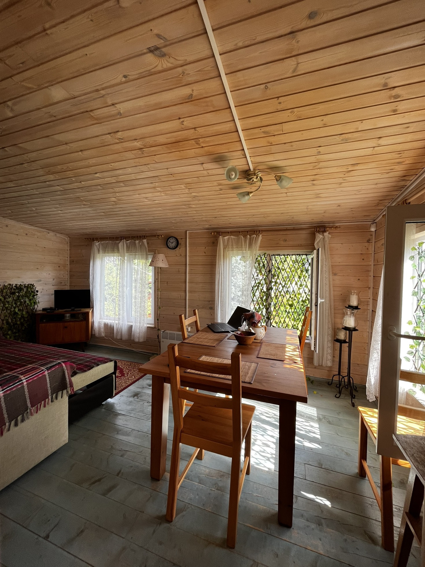 - Обшили сайдингом снаружи и деревом внутри.
