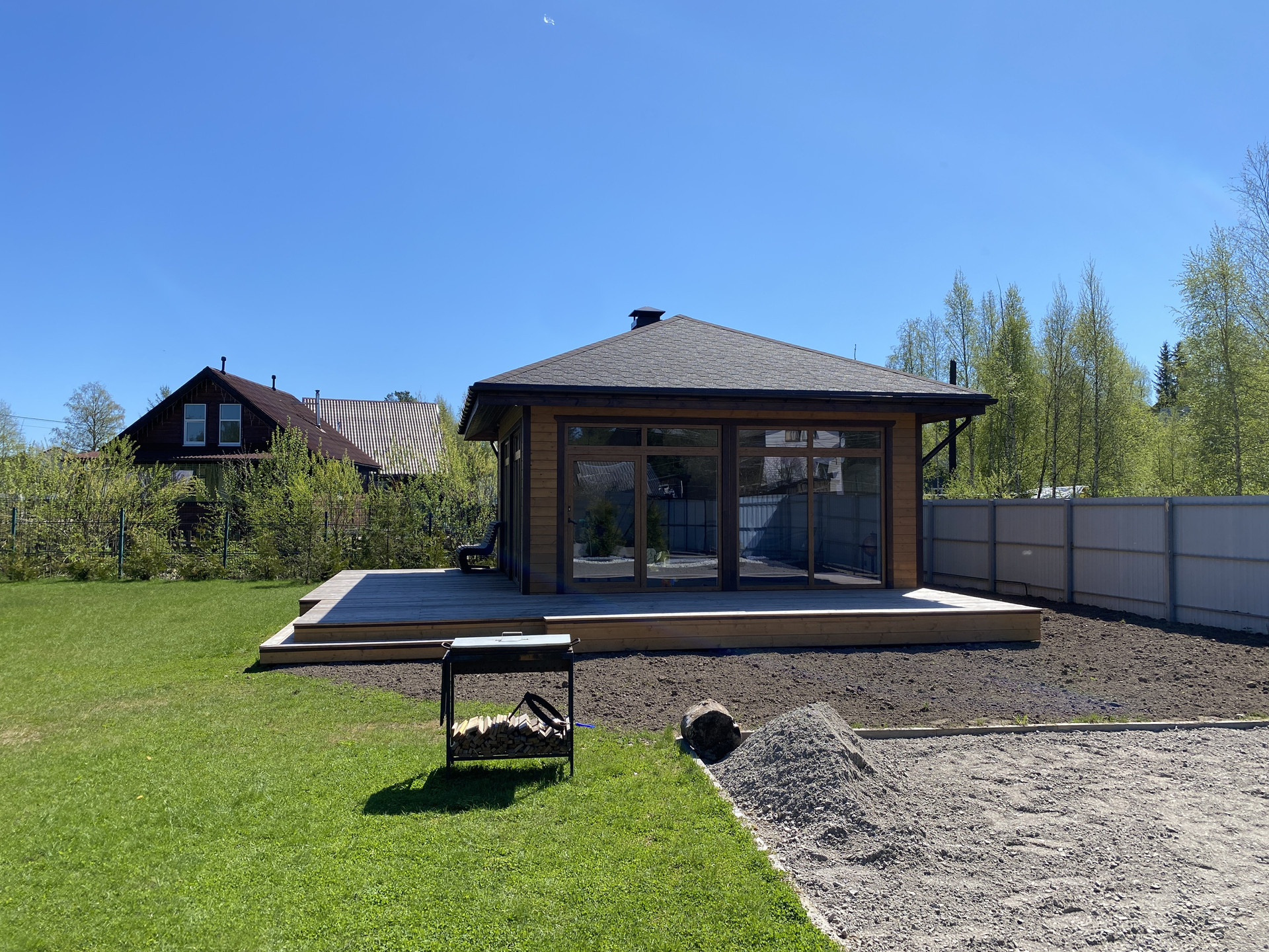 Также есть в собственности соседний участок 12 сот, огороженный забором, с зимней утепленной беседкой, с хорошем остеклением, кровлей, камином. Стоимость оговаривается отдельно.