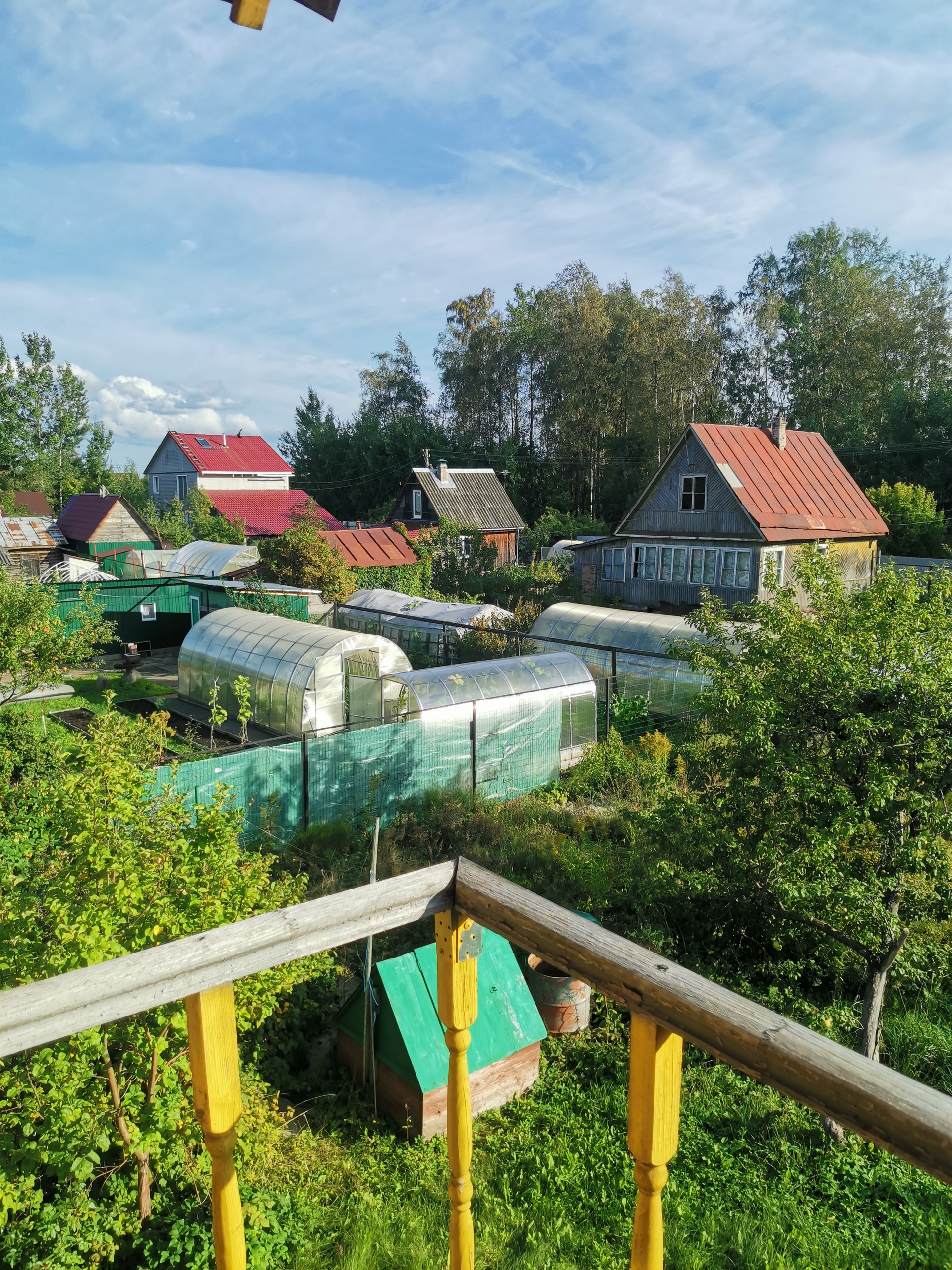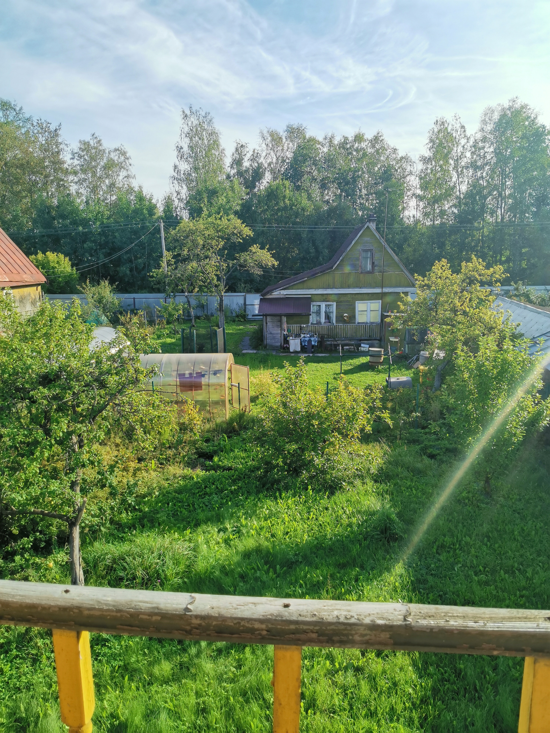 На участке плодовые деревья и кусты.