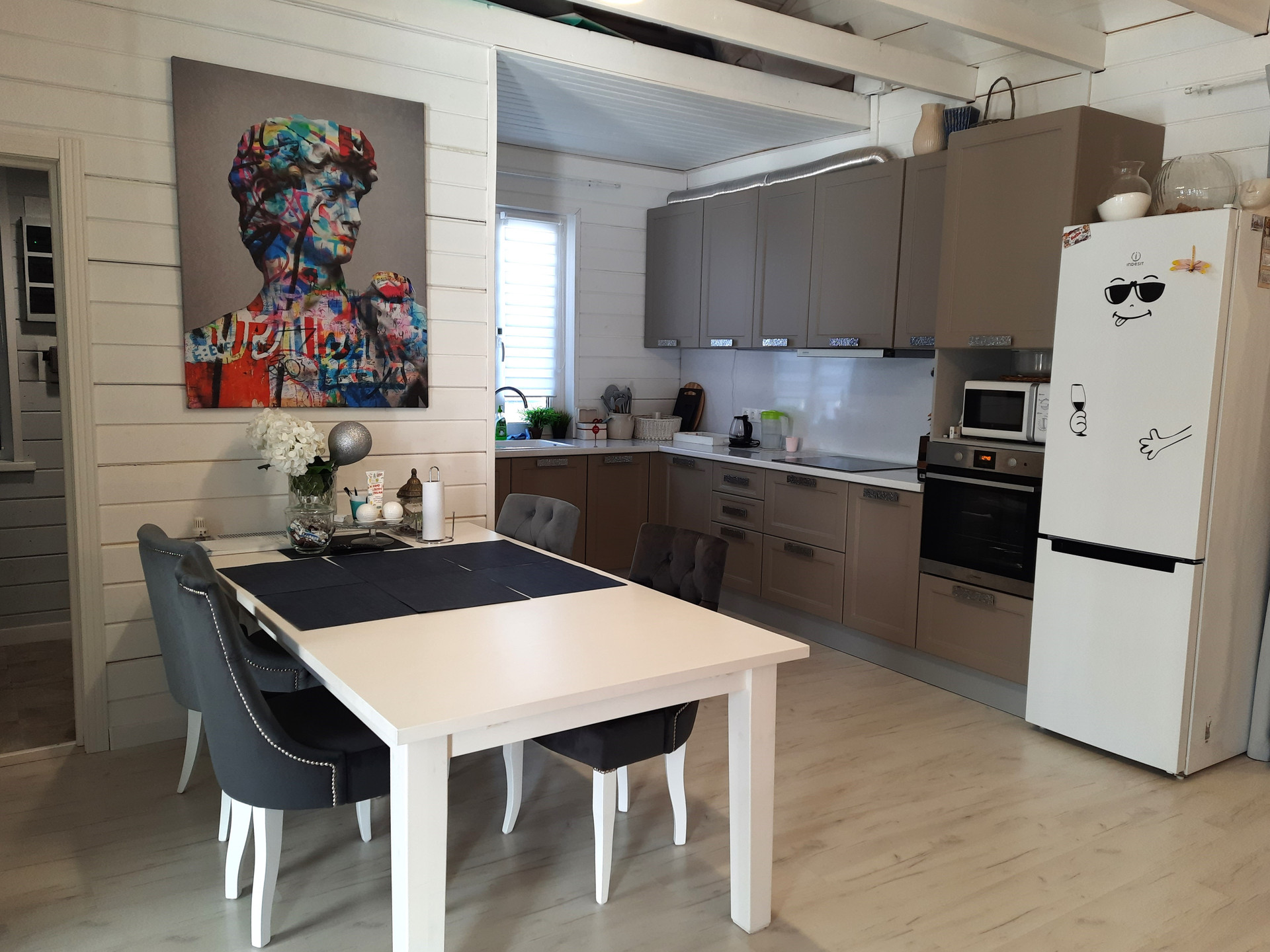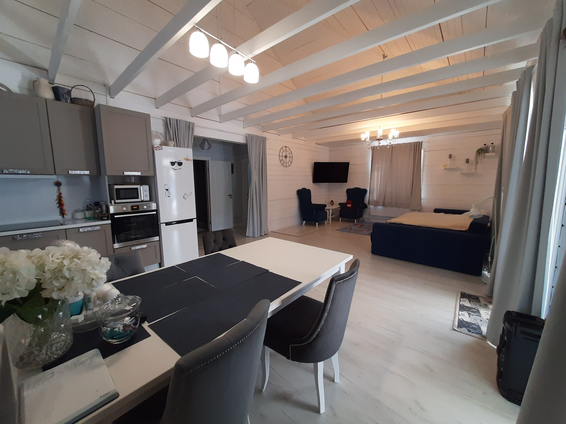 Планировка: с улицы вас встречает аккуратная просторная открытая терраса, располагающая к летним посиделкам и отдыху, небольшая прихожая, просторная и светлая кухня-гостиная(40 м2) с панорамными окнами и дополнительным выходом на террасу, аккуратный небольшой холл, две уютные изолированные комнаты( по 15 м2),просторный оборудованный и укомплектованный сан/узел.