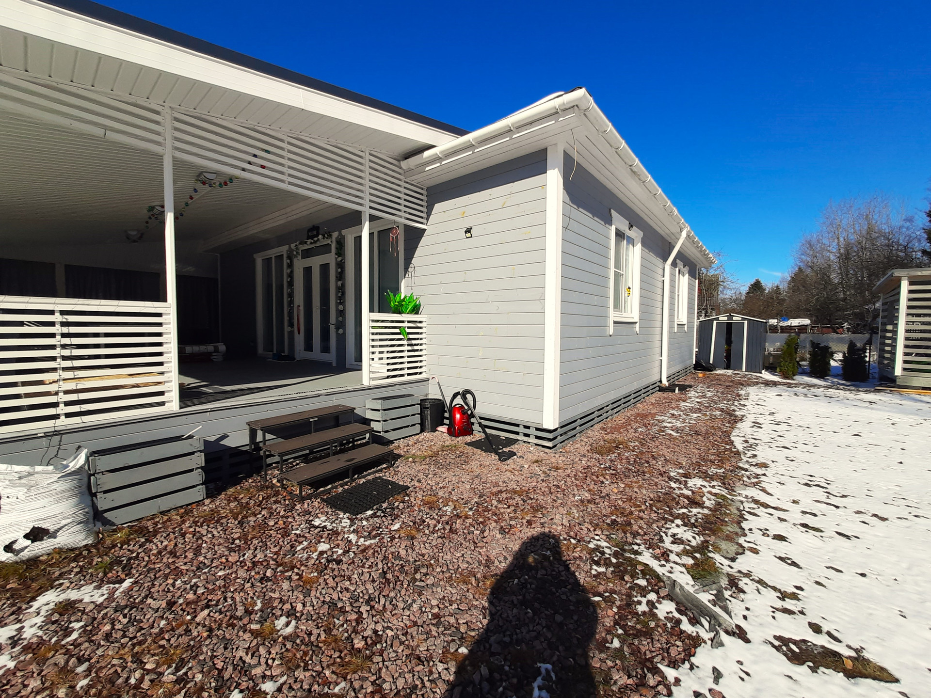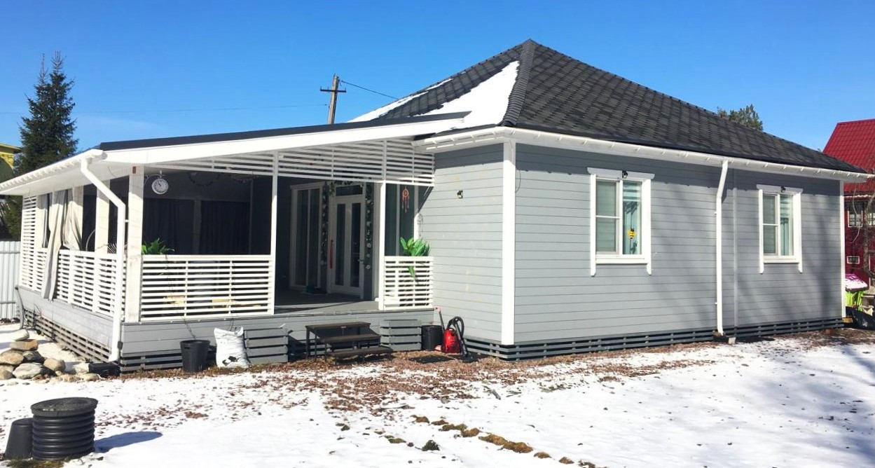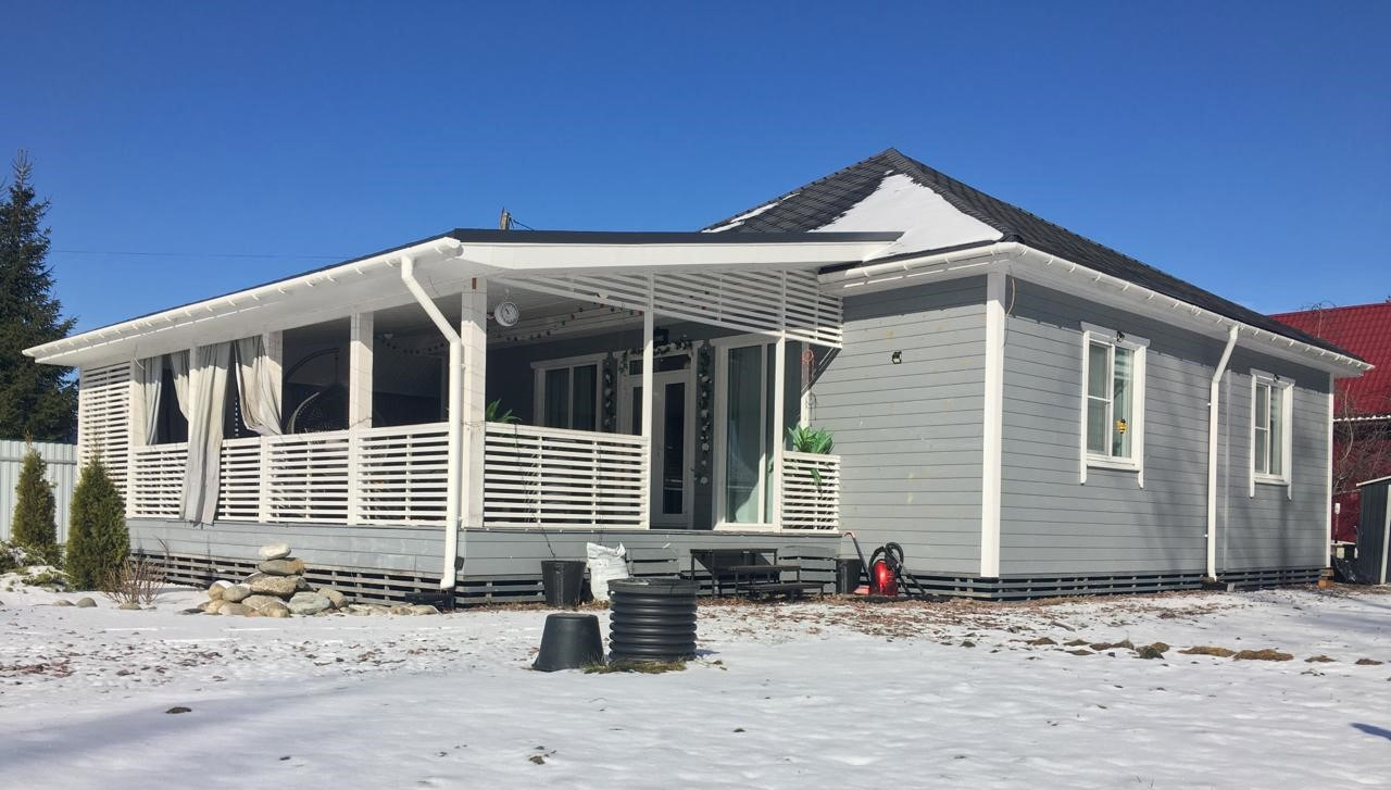 Дом по документам зарегистрирован как жилой( подходит под ипотеку и мат.капитал) 103 м2 + терраса 45 м2. Построен в 2020 году по каркасной технологии с утеплением 200мм( каменная вата).Стоит на свайно-винтовом фундаменте,под крышей из мягкой финской черепицы.Внутри и снаружи обшит имитацией бруса.Подключено электричество 15 Квт!!! Отапливается при помощи электрического котла( батареи с регулировкой тепла разведены по всему дому).Водоснабжение от собственного колодца( 4 кольца).Вода заведена в дом( имеется греющий кабель для зимнего периода).Возможно подключиться к центральному( зимнему питьевому) водопроводу!