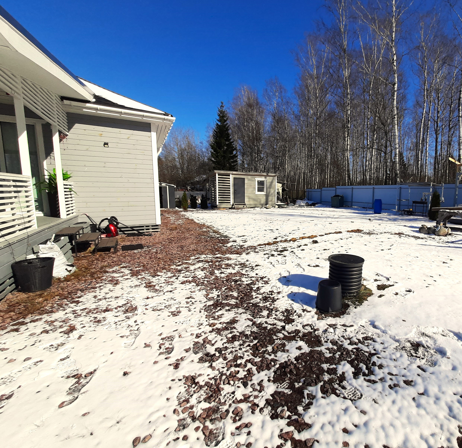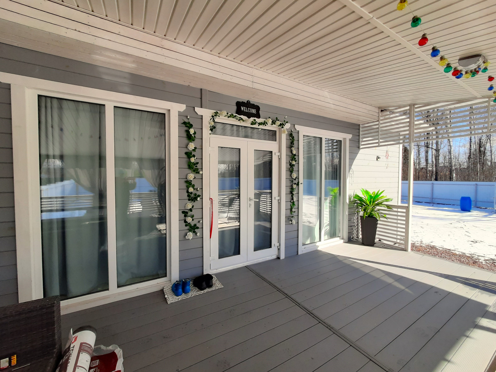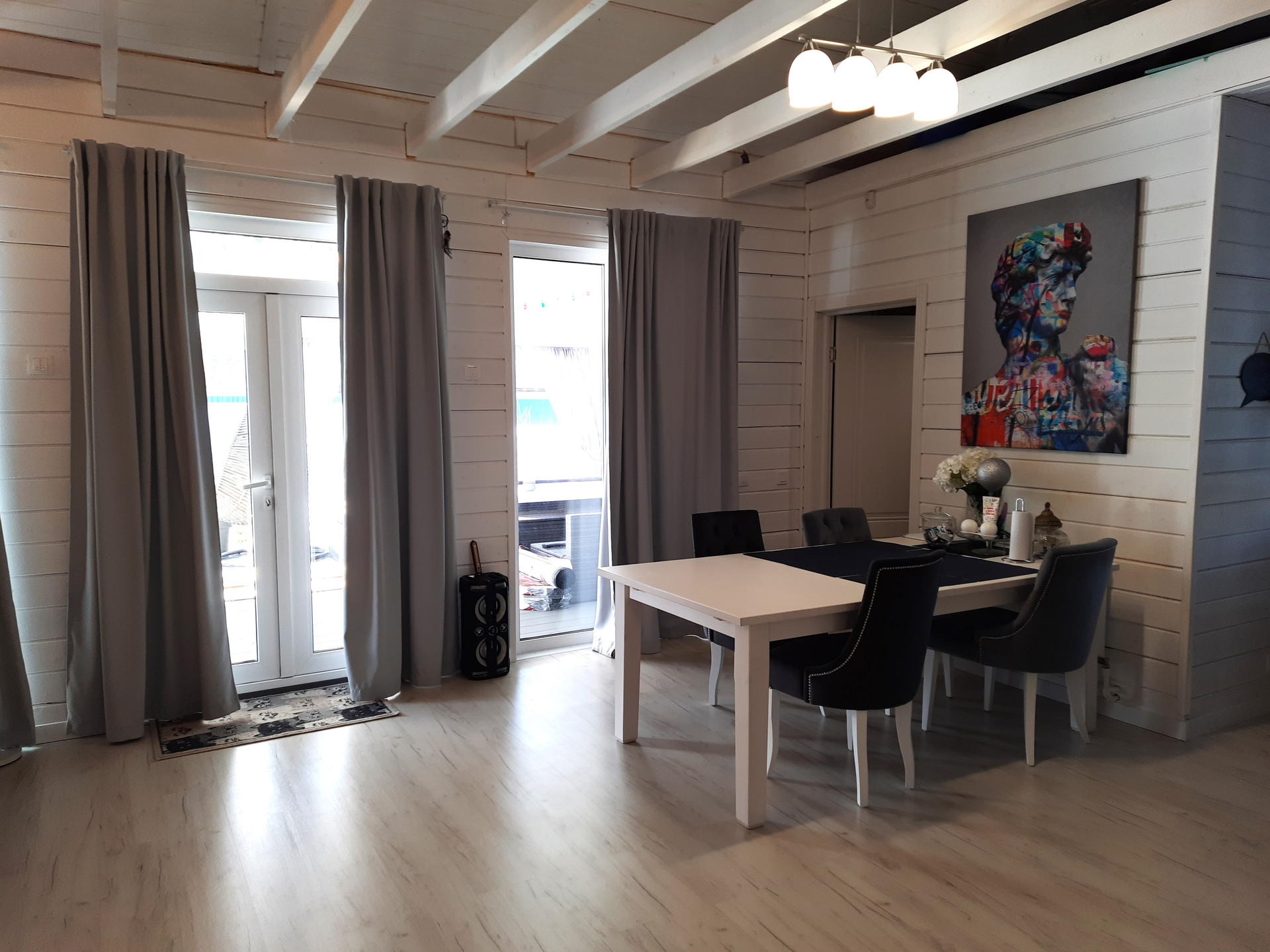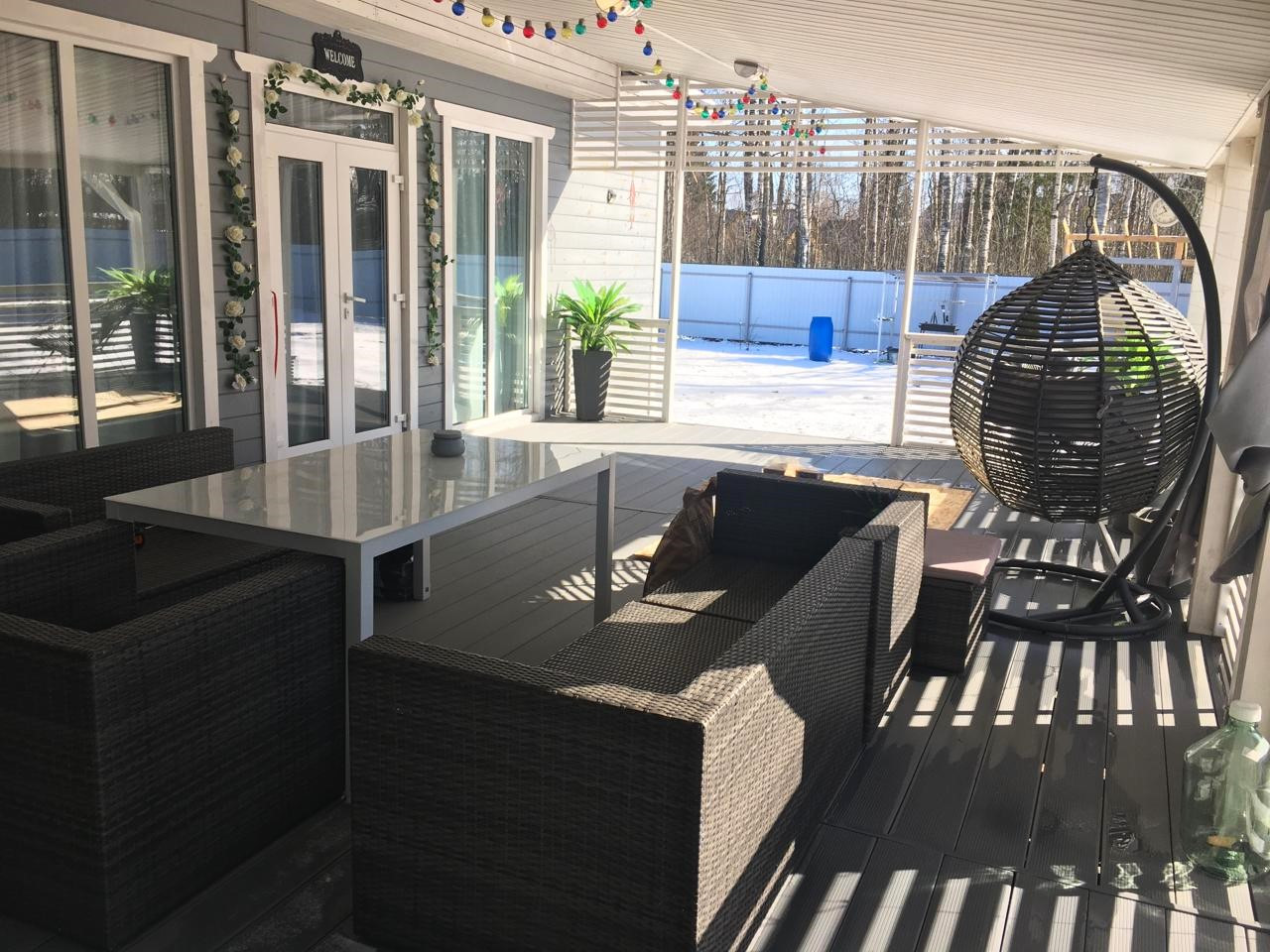 Везде установлены двухкамерные стеклопакеты, на полу - ламинат( в прихожей и сан.узле кафельная плитка).Подключен оптоволоконный интернет, установлена локальная канализация( станция биологической очистки).Смонтированы водостоки, с отведением воды в дренаж.По участку сделан вертикальный дренаж( такая система водоотведения состоит из нескольких дренажных вертикальных колодцев).