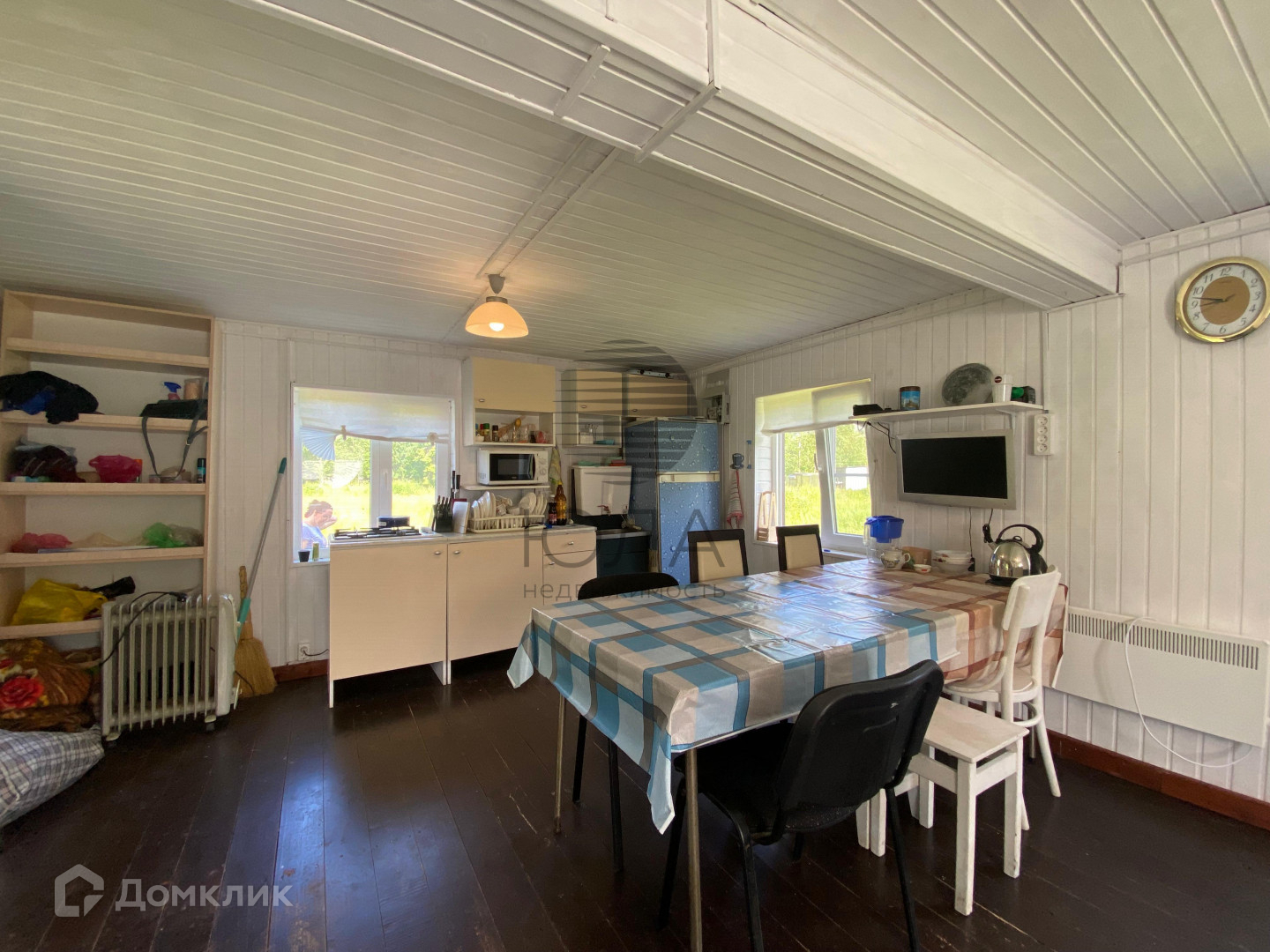 Дом двухэтажный, есть все необходимое для проживания, кухня, спальные места, система хранения.