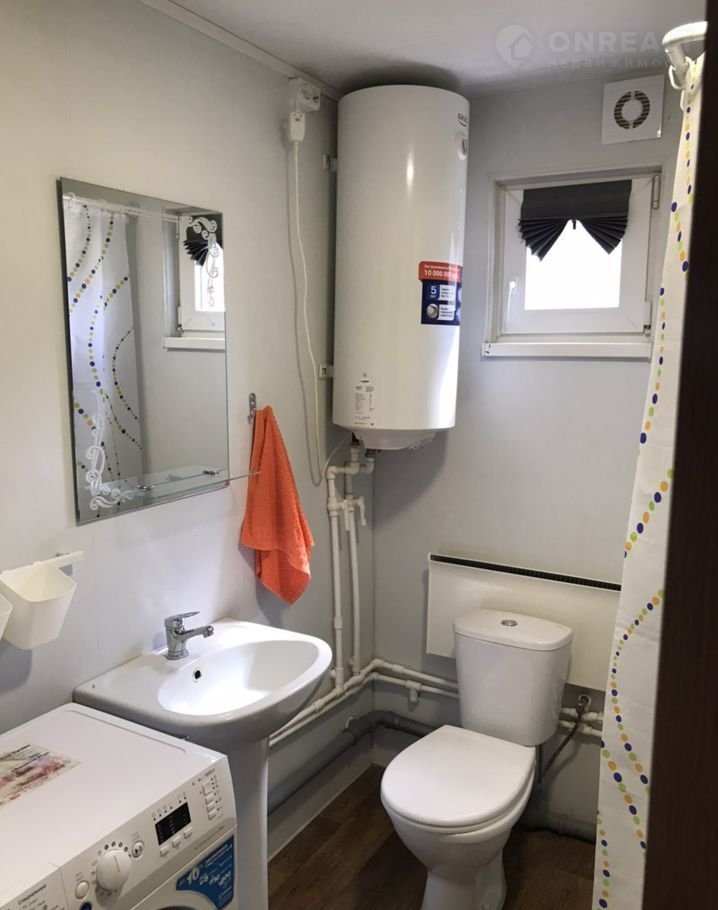 Санузел совмещенный (4 м2), включает унитаз, раковина, душ с термостатом, бойлер на 80л, стиральная машина, эл. полотенцесушитель.