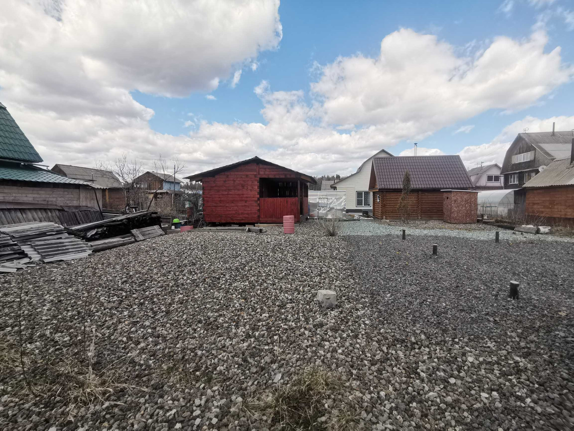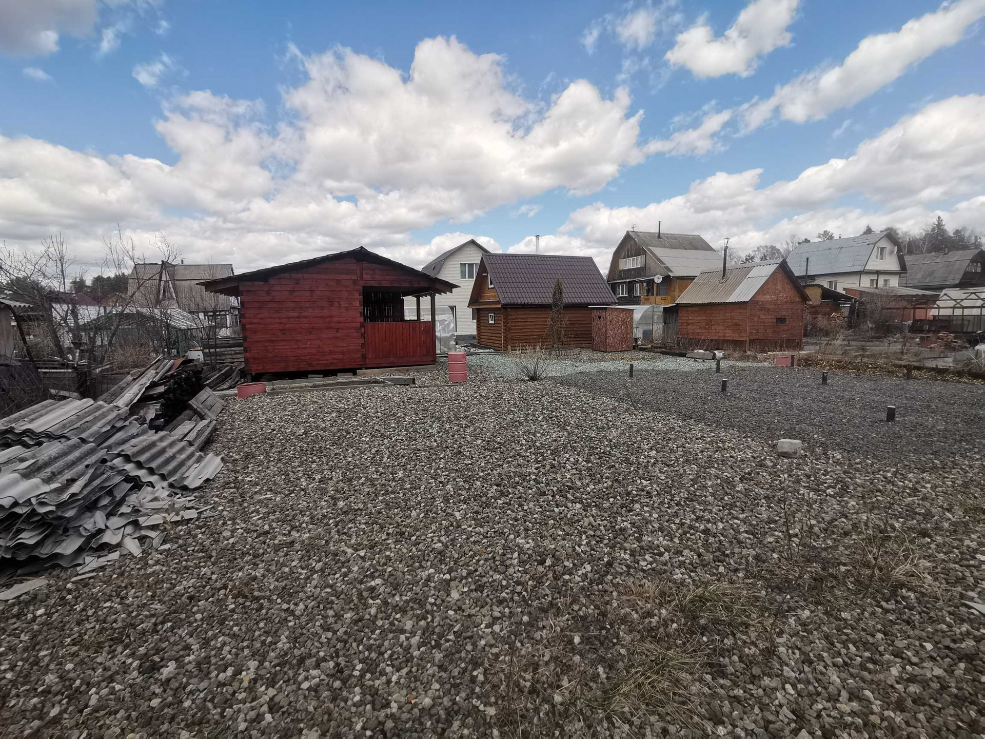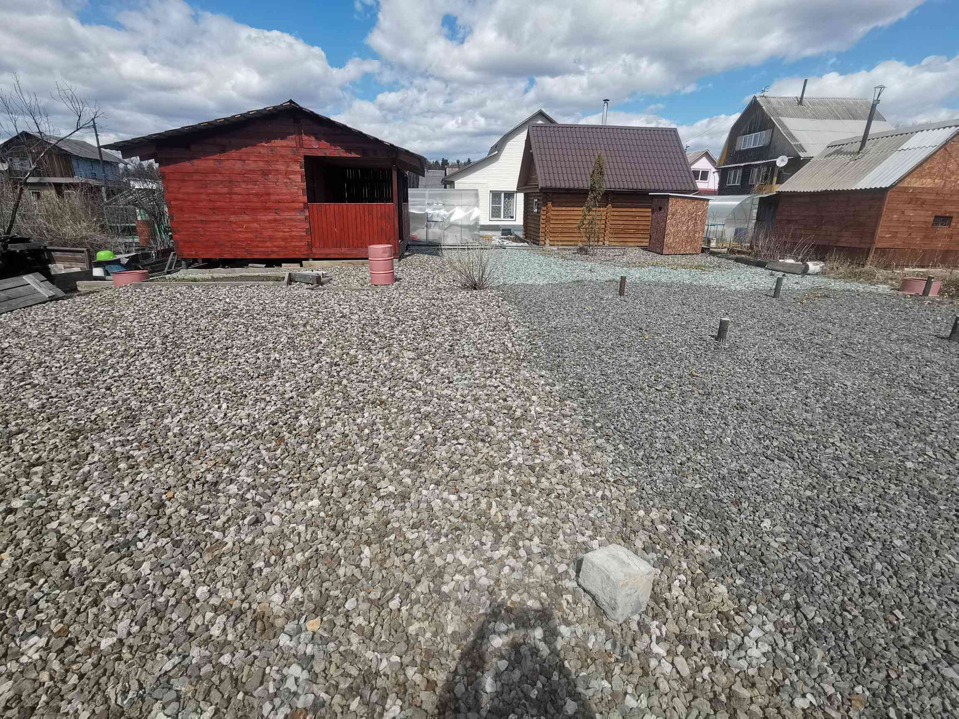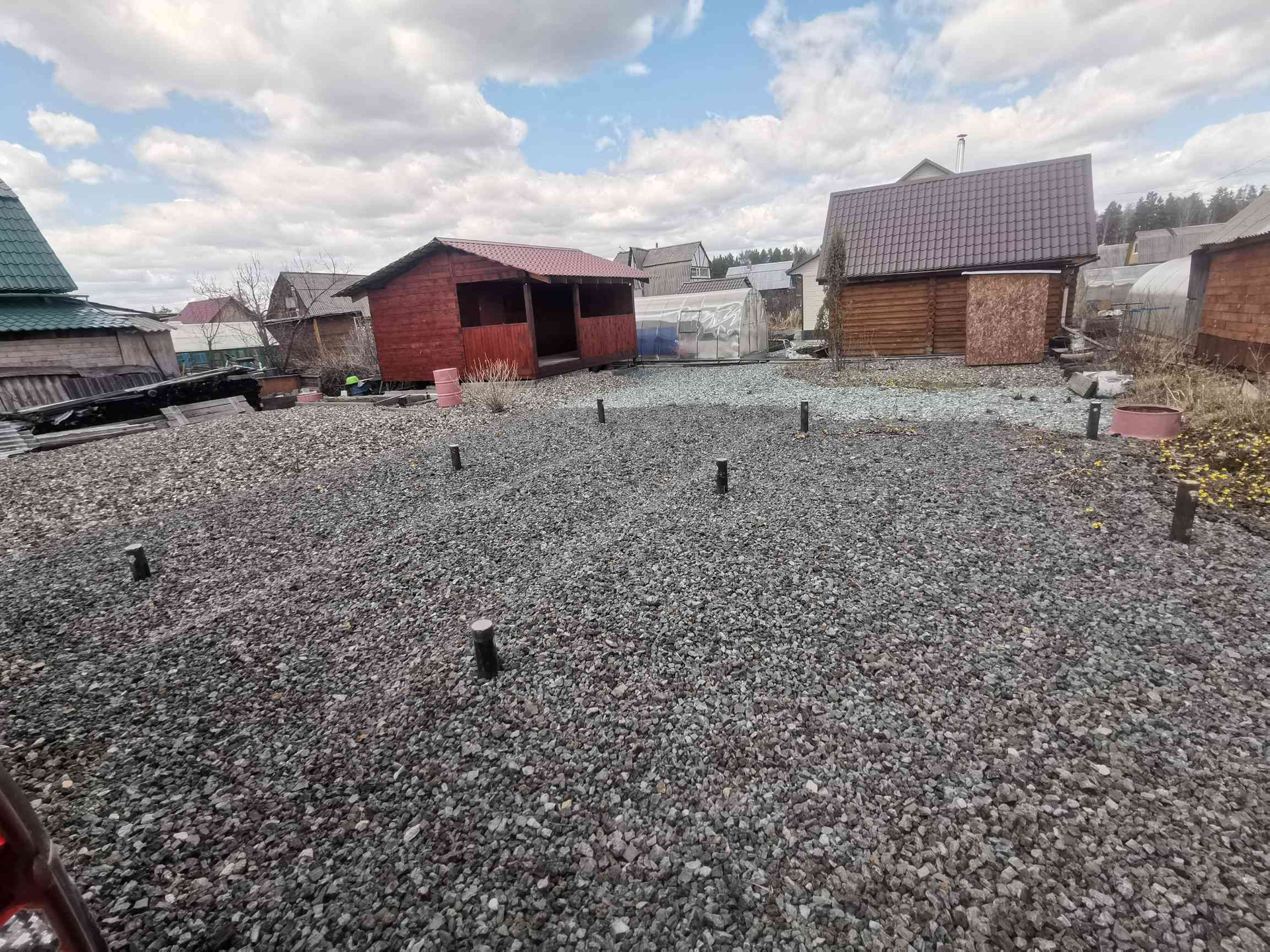 Под постройку дома сделан свайно-винтовой фундамент размером 6/6 метров, диаметр свай 89 мм. Участок полностью отсыпан щебёнкой.