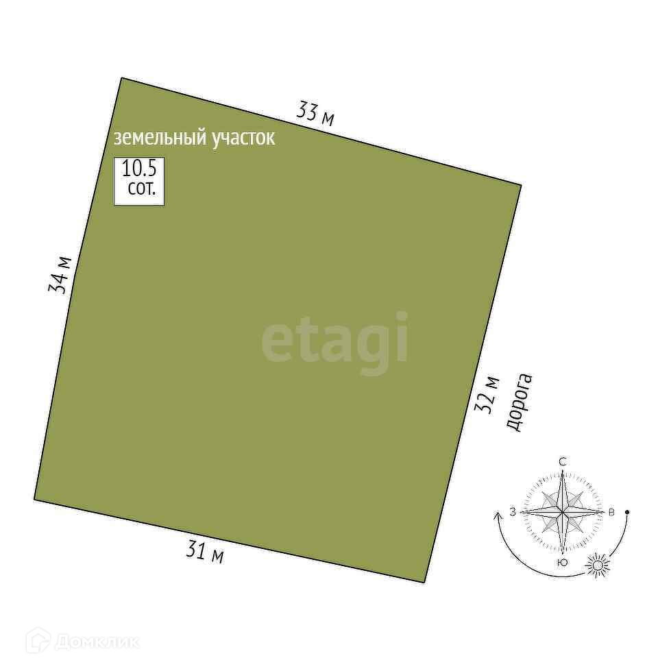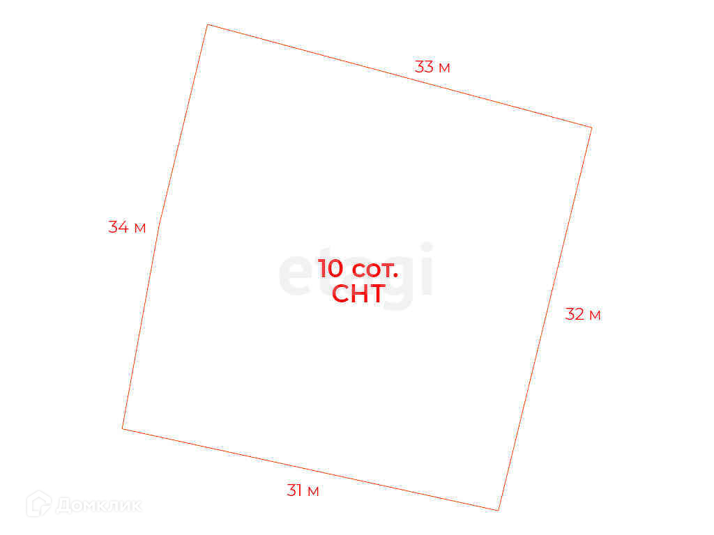 Размеры участка - 34 м. х 33 м. х 32 м. х 31 м.