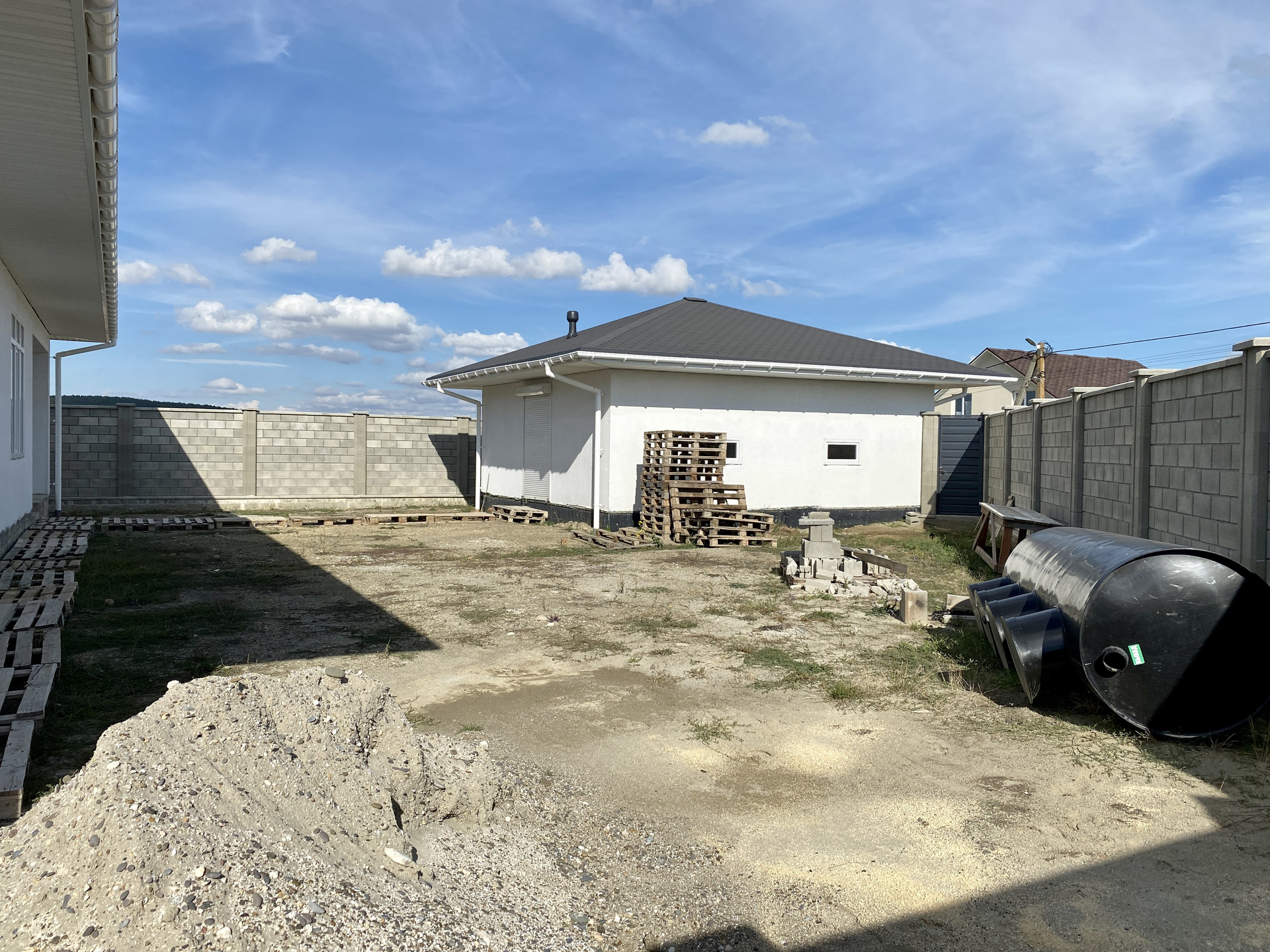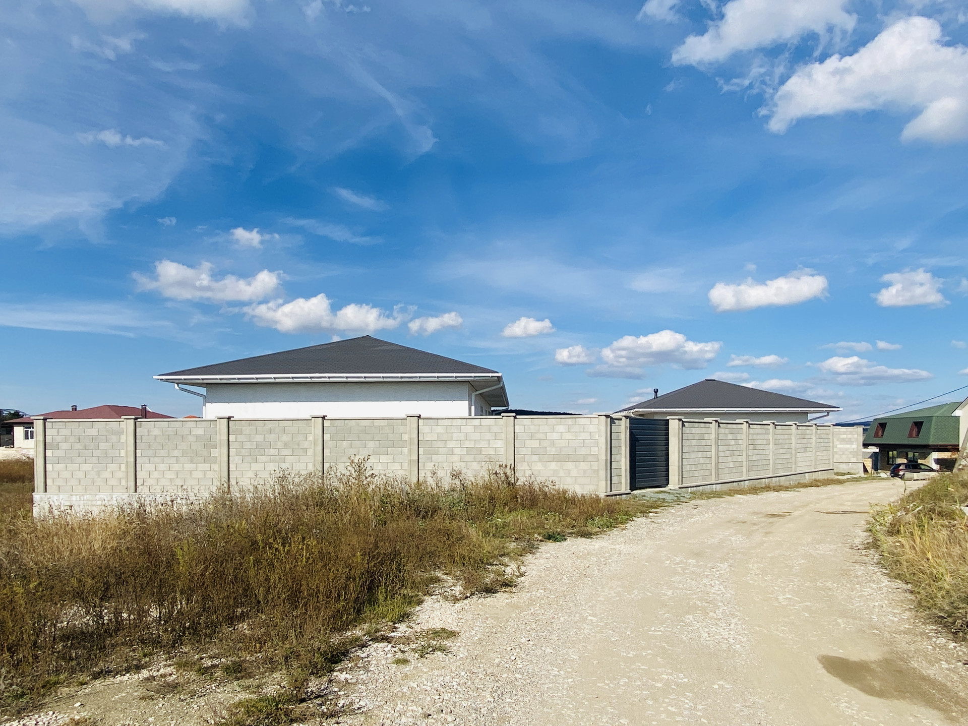 Участок более чем видовой, с трех сторон хвойный лес, а с четвертой открывается отличный вид на долину. Участок огорожен по всему периметру забором из "французского" камня. Участок ровный и распланирован, сделана система подземного водоотведения дождевой воды и дренажа. Дом площадью 150 м2 зонирован. Зона отдыха состоит из трех спален площадью 15, 15 и 19 м2. Гостиная-столовая имеет площадь 36 м2. Кухня отдельная с кладовой (16 м2) имеет выход на террасу площадью 14 м2. В доме также есть два санузла, котельная, гардеробная и прихожая. Дом теплый, светлый и сухой. Стены дома из природного материала ракушечника толщиной 0,4 м. Потолки 3,2 метра. Окна большие. Вентиляция под систему рекуперации. Гараж на две машины площадью 50 м2. Двое секционных ворот. Дом и гараж построены по каркасно-монолитной технологии. Все стены, включая межкомнатные, армированы. Гостевая парковка с отдельным въездом. Электричество 3 фазы. Центральный водопровод. Интернет. Газификация всего района по федеральной программе на конец 2023 года.