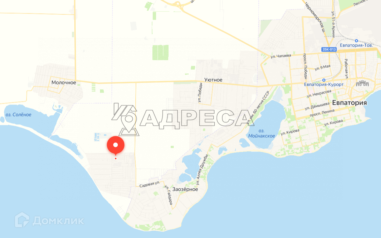 Всё необходимое рядом! В непосредственной близости расположены пгт. Заозёрное, а также Евпатория - Звёздный центр Западного Крыма,  что позволит вам наслаждаться развитой инфраструктуpой и тематическим разнообразием курортного города. Регулярное автобусное сообщение по всем направлениям полуострова и за его пределы. От ж/д станции "Евпатория" отправляются электрички "Евпатория - Симферополь", а также поезд "Евпатория - Москва".  Недалеко расположены Жемчужины Западного Крыма! - знаменитые солёные озера с лечебными грязями - Мойнаки и Сакское. Множество профильных круглогодичных санаториев с грязелечением.