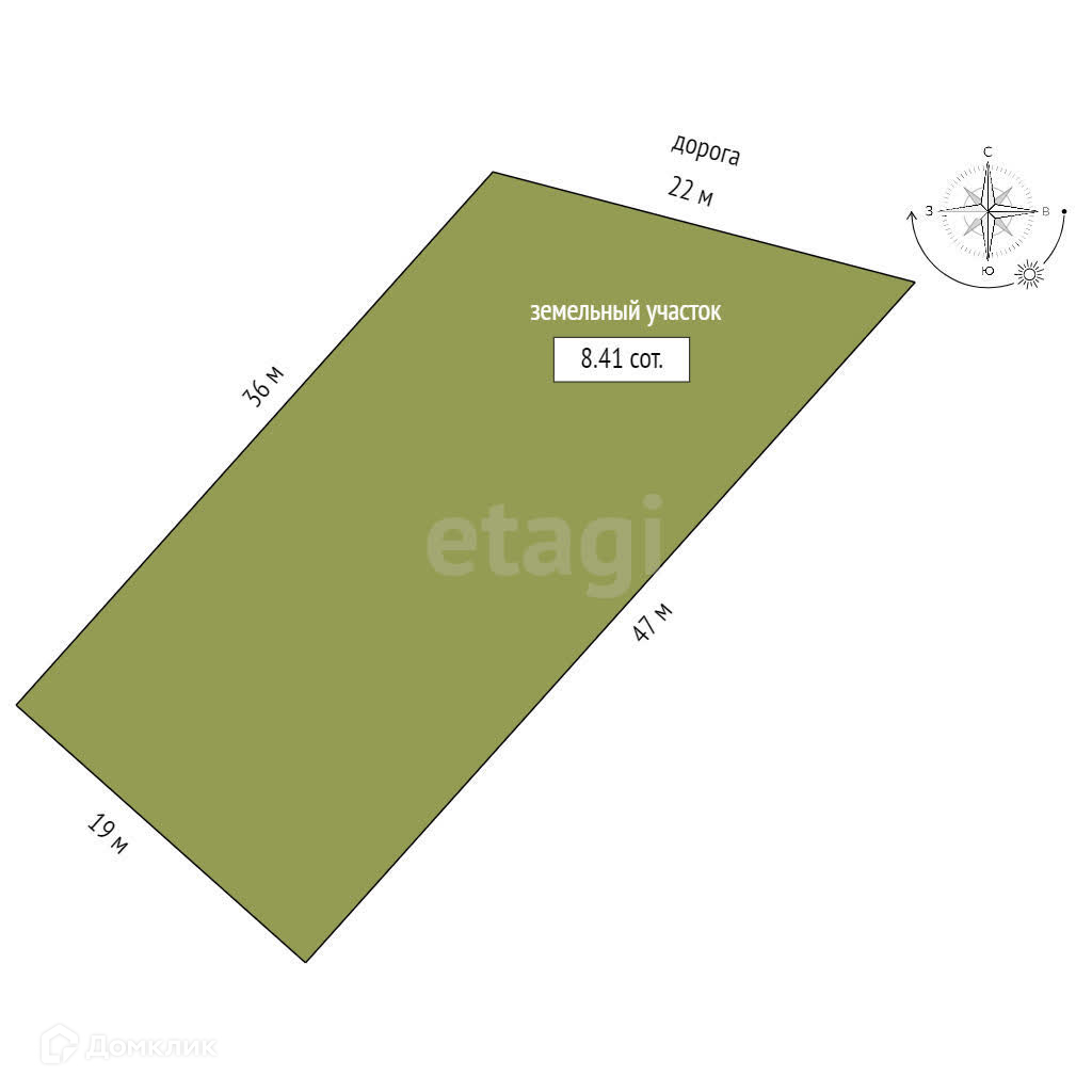 Площадь участка 841 квадратный метр, находится не очень далеко от Верхнесадового.