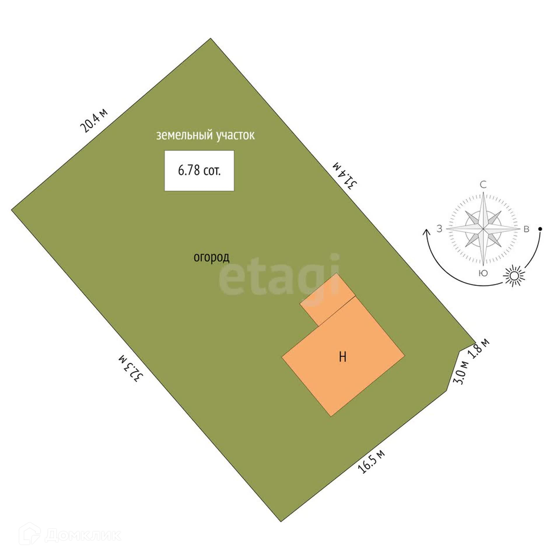 Площадь участка 6.8 сот.