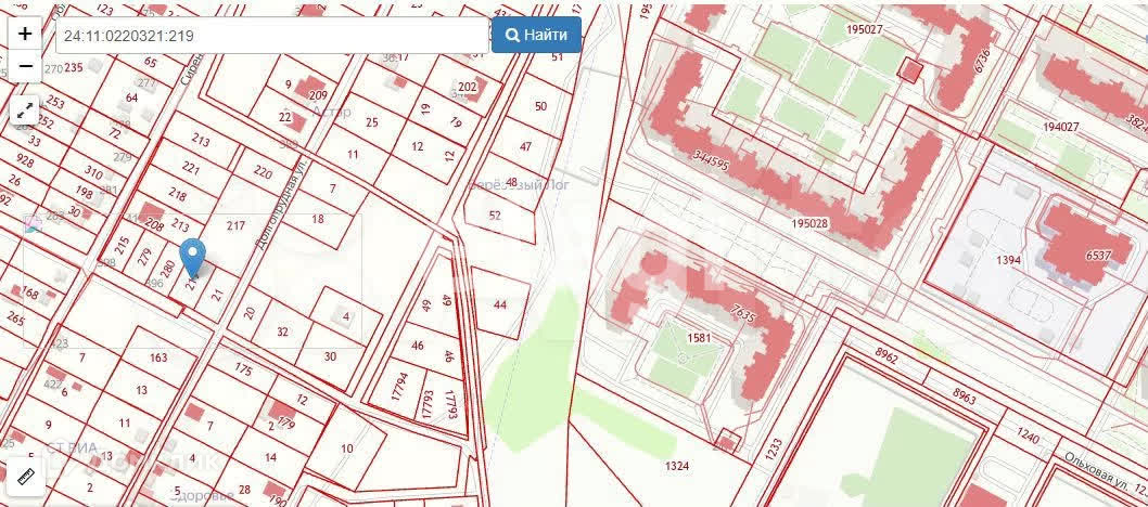 Участок находится в 150 метрах от дома Ольховая 21 .
