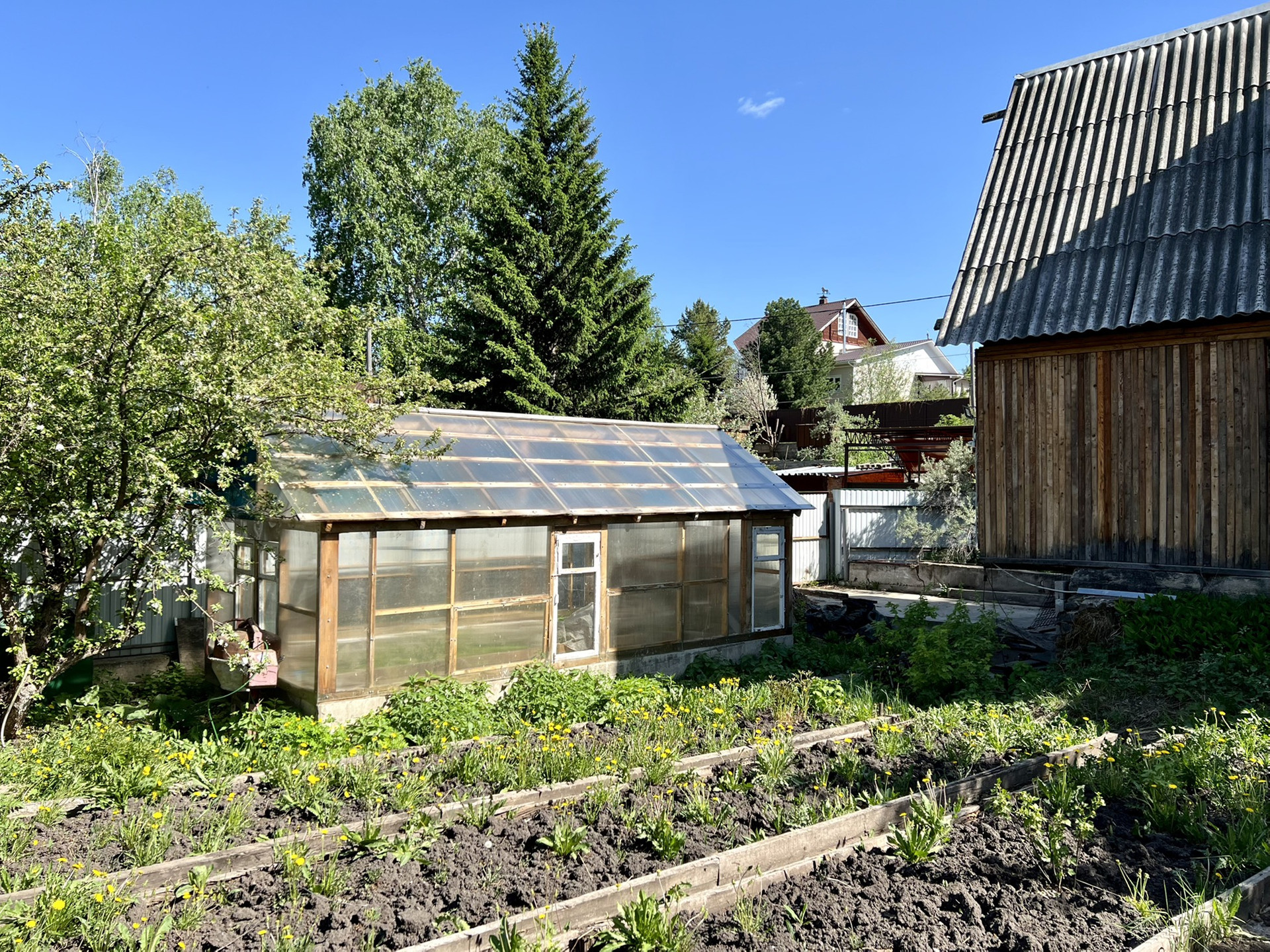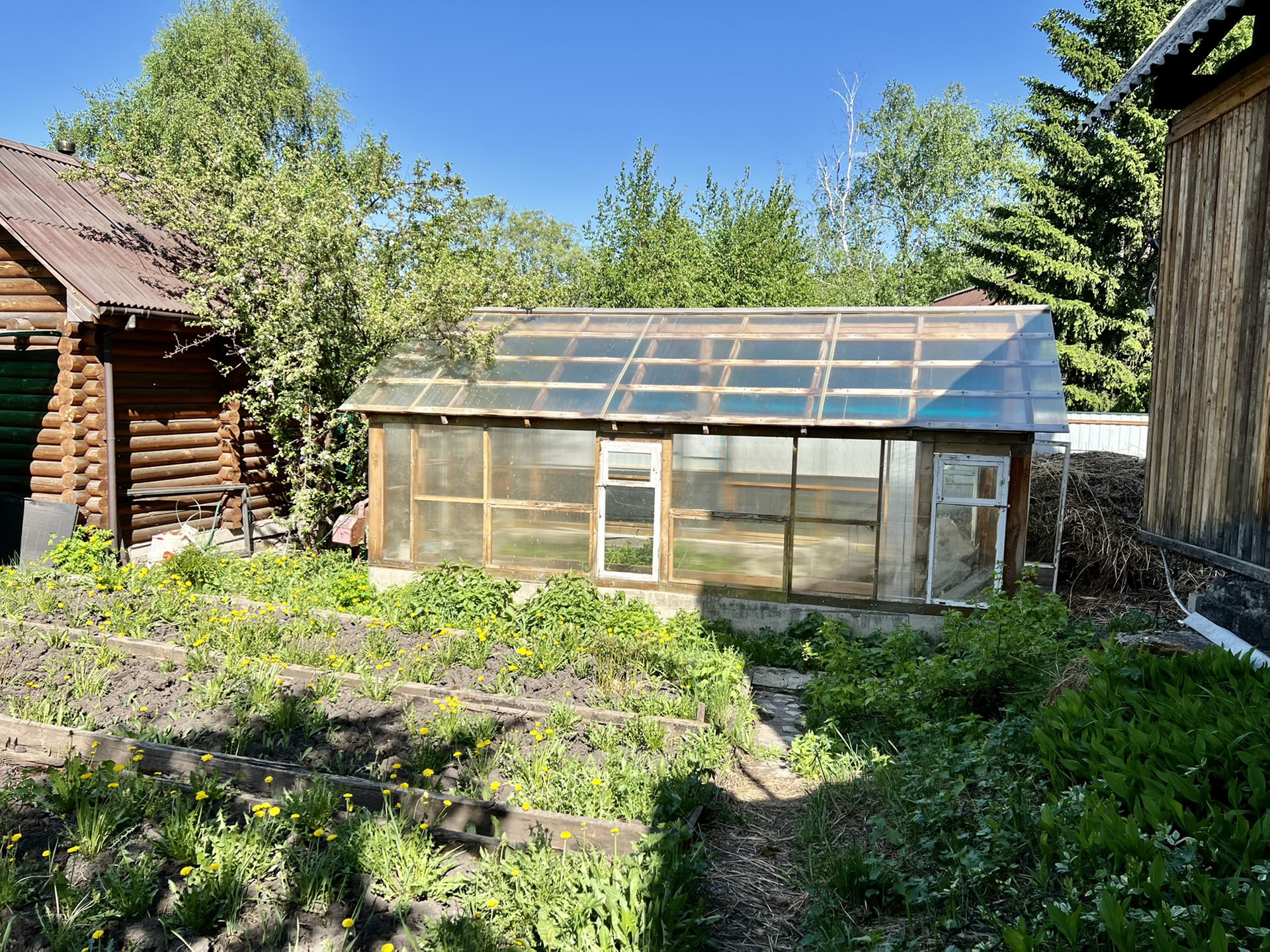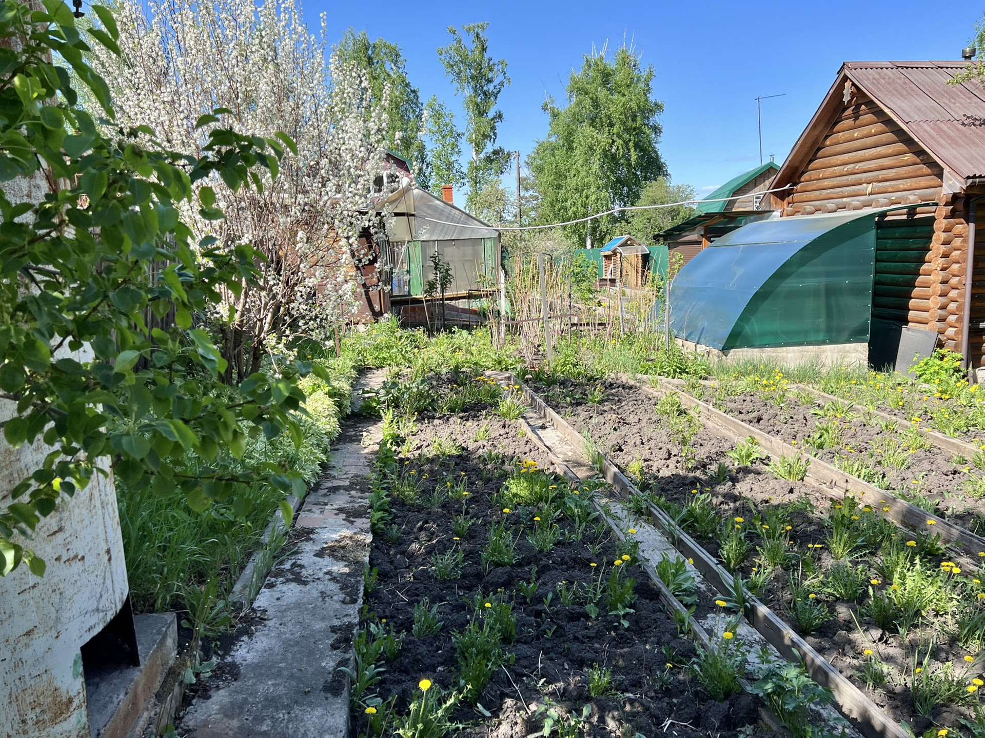- теплица, грядки;
