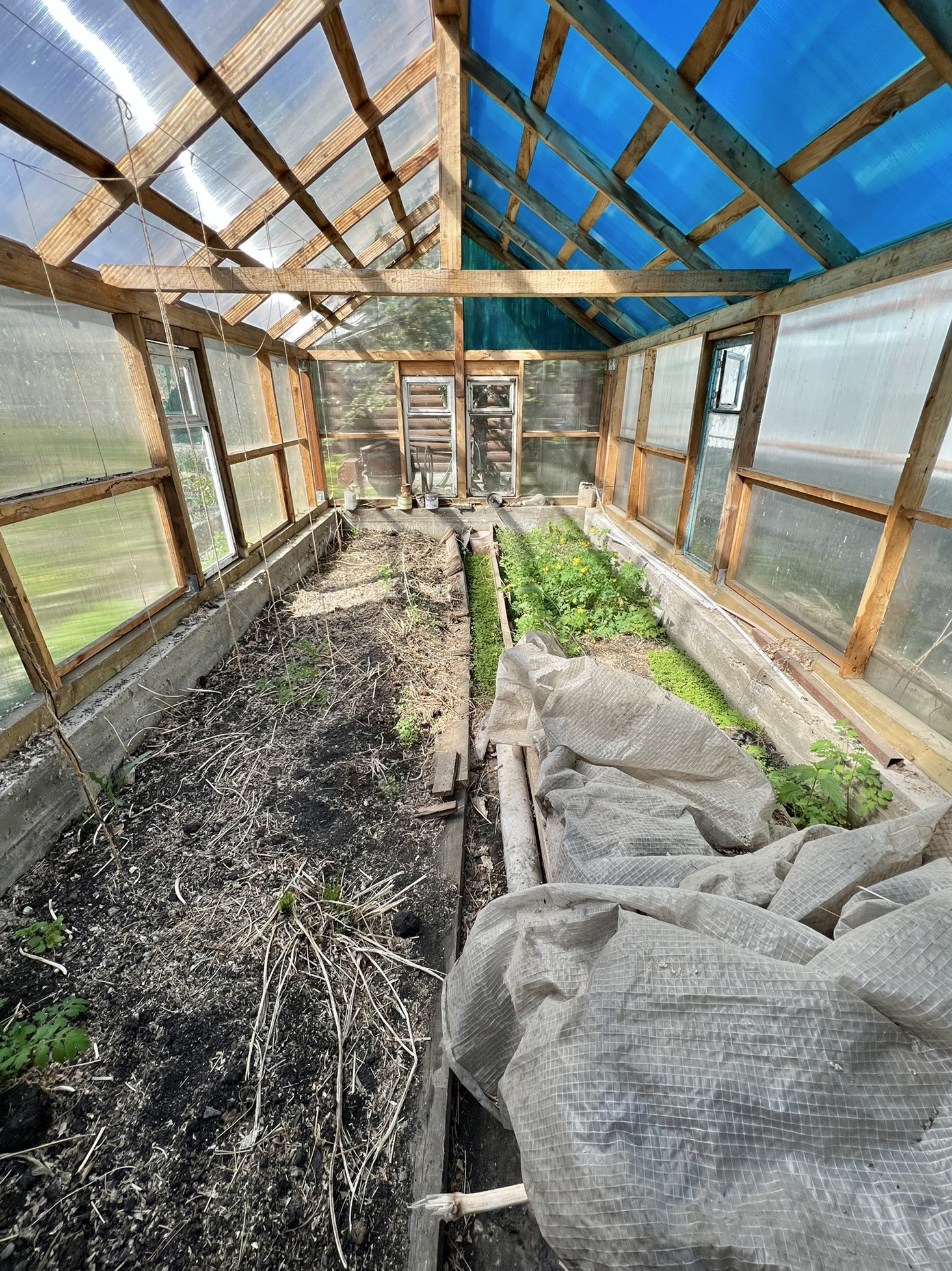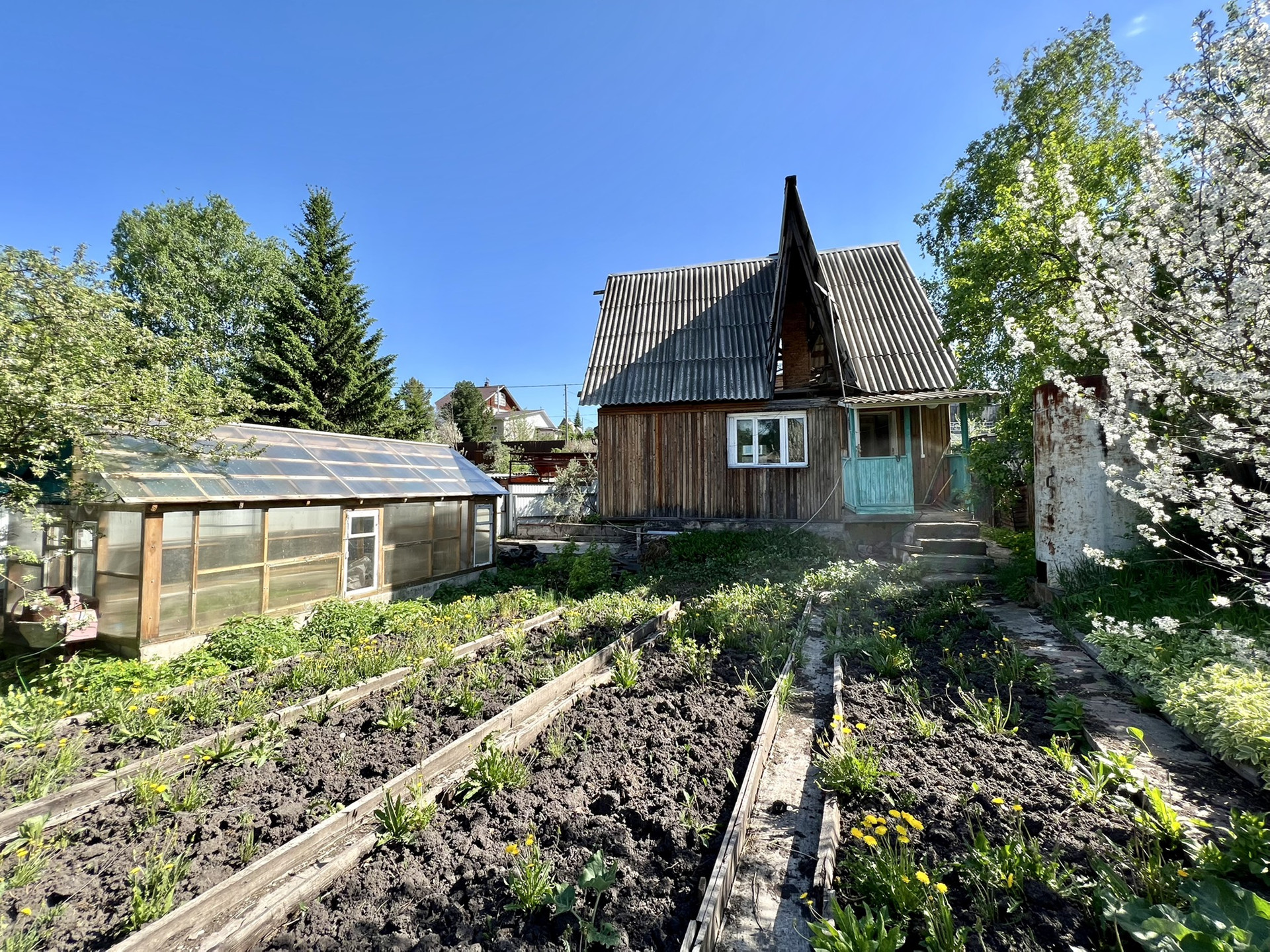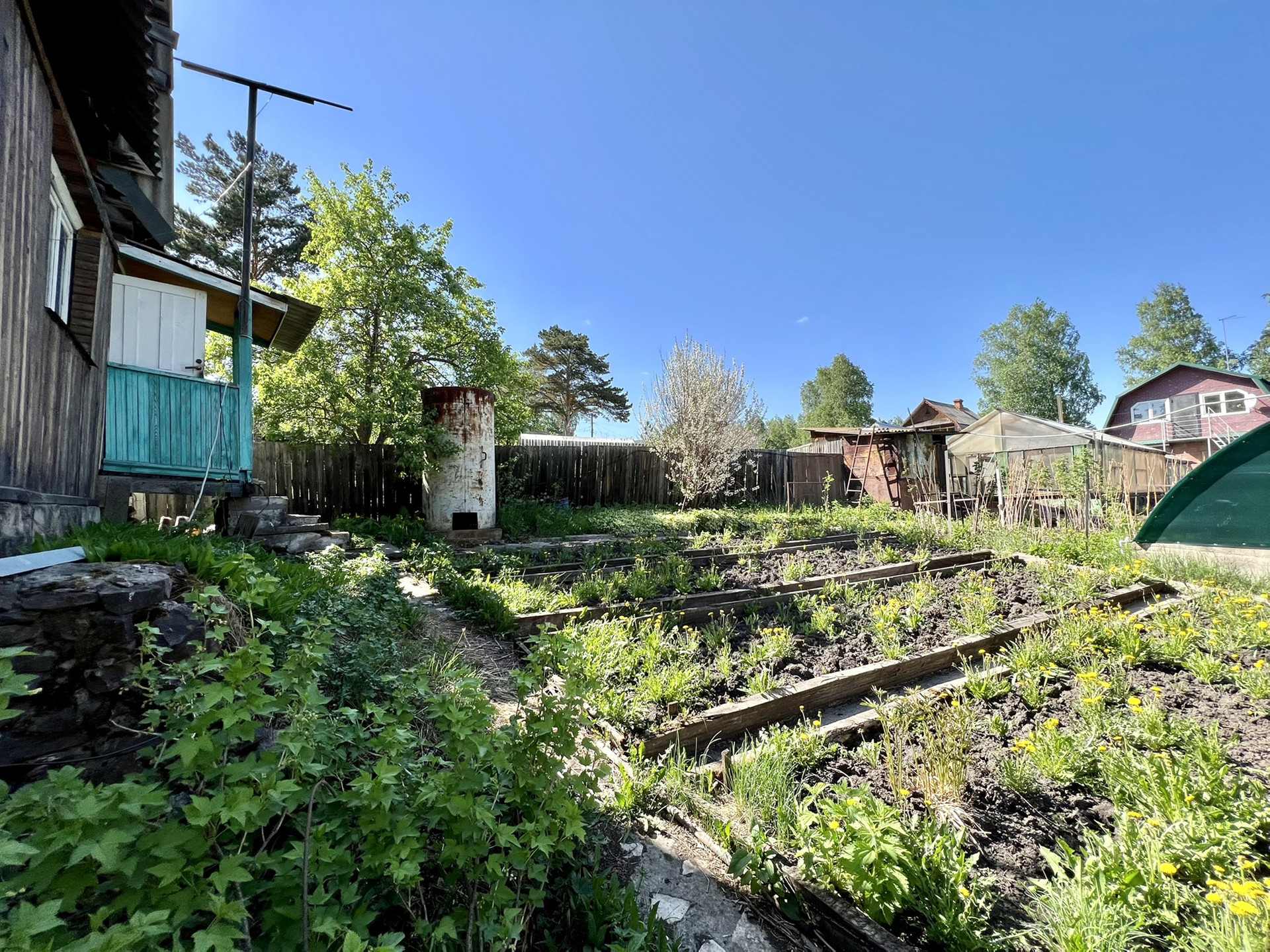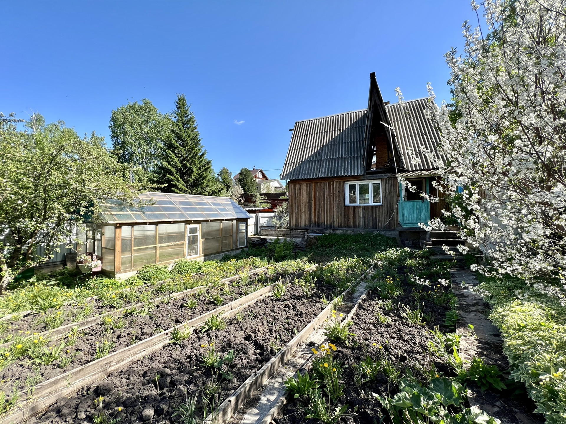 - теплица, грядки;