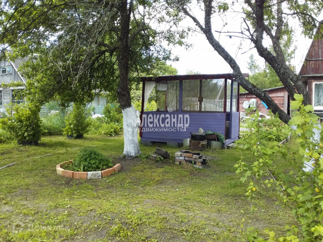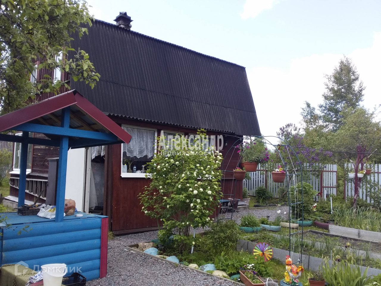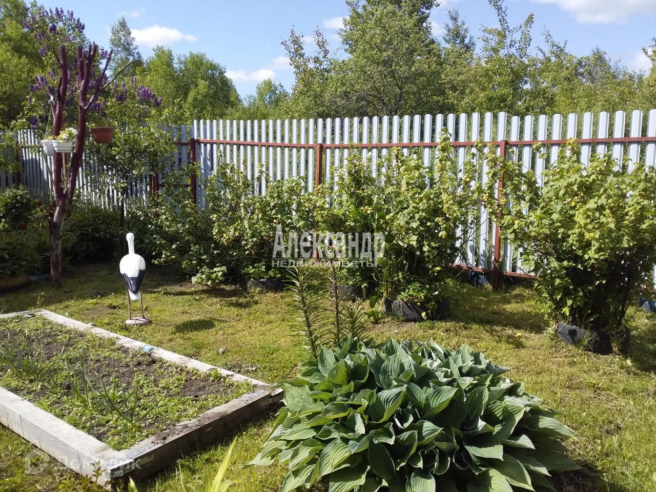 Участок 9 сот., огорожен, очень ухоженный, дорожки отсыпаны гравием, разработанные грядки, теплицы, много плодовых деревьев и кустов. На участке летний водопровод для полива и хоз. нужд, беседка, гараж, хоз. блок где находится баня, сарай для дров и навес.