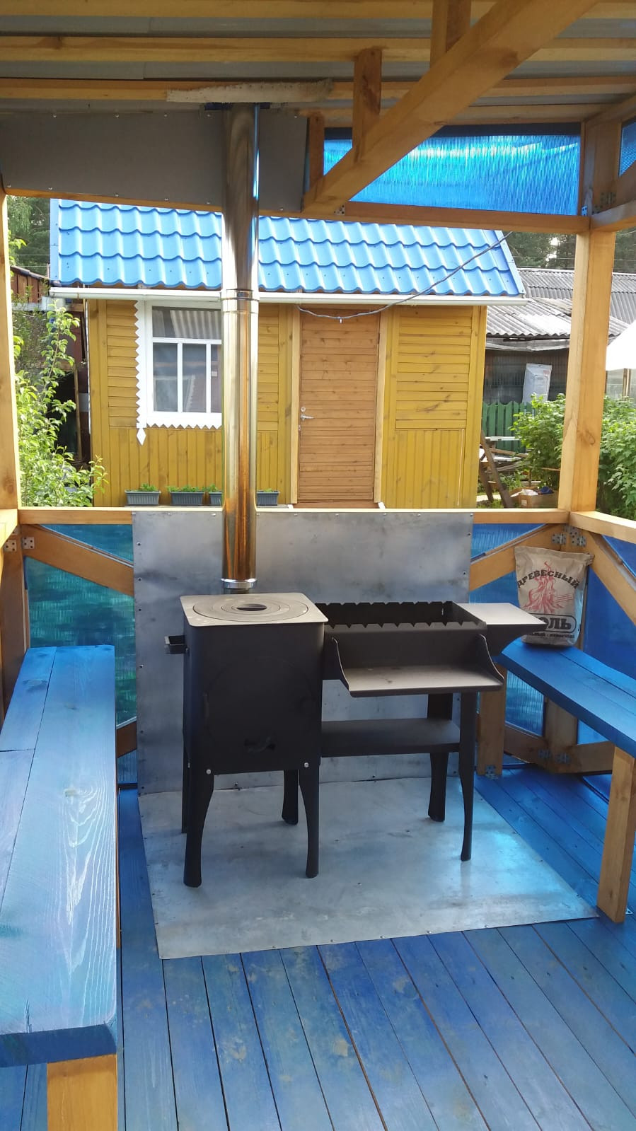 На участке парник под огурцы, две теплицы, бак под воду, небольшой летний домик, беседка + казан-мангал для полноценного отдыха, участок разработан, прямоугольной формы, ровный. Крыша дома перекрыта новым материалом в 2023 году, есть новая современная печь с теплообменником нужно только установить. В доме оставляют мебель.