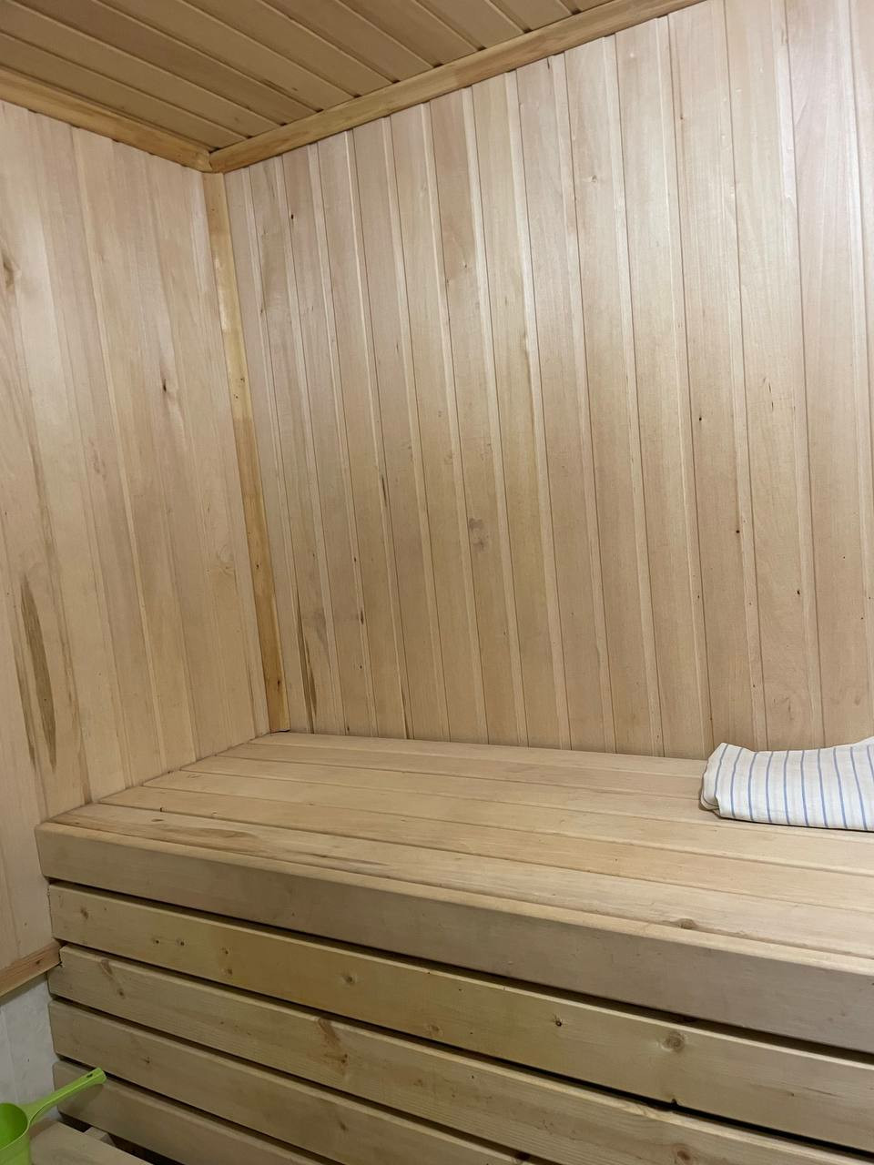 первый этаж: коридор, лестница, туалет, зал-кухня с эркером, кладовка, сауна