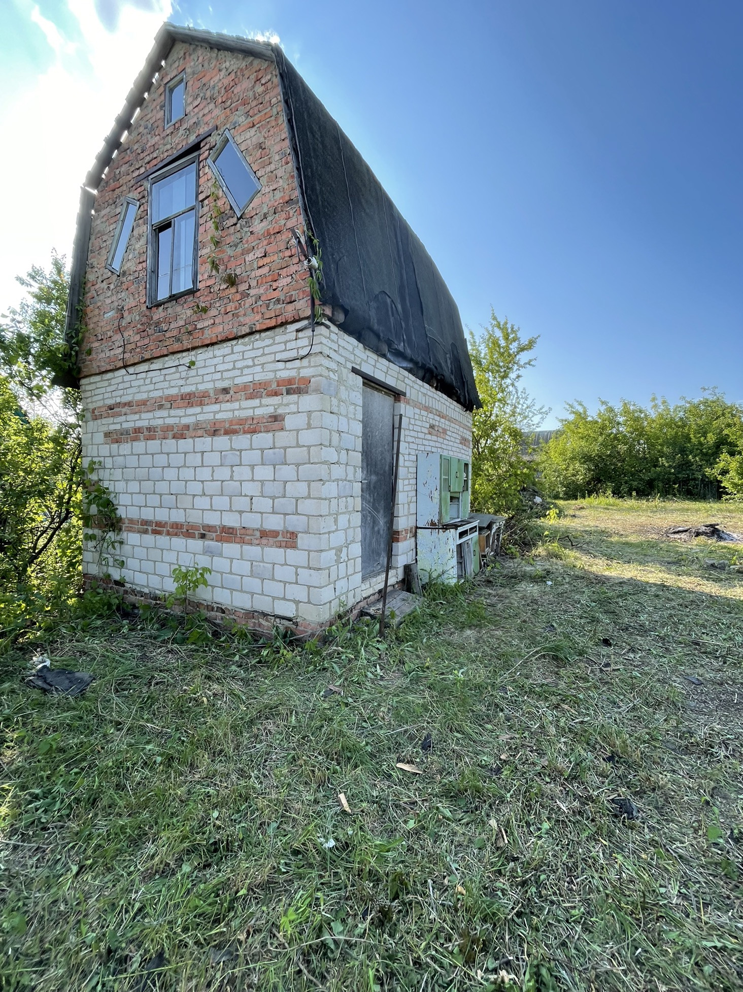 На участке имеется двухэтажный домик  общей площадью 20м2, а так же на участке имеется вода и резервуар для хранения воды. Требуется ремонт крыши! Свет в доме был пока не украли провод , с подключением электричества проблем нет.