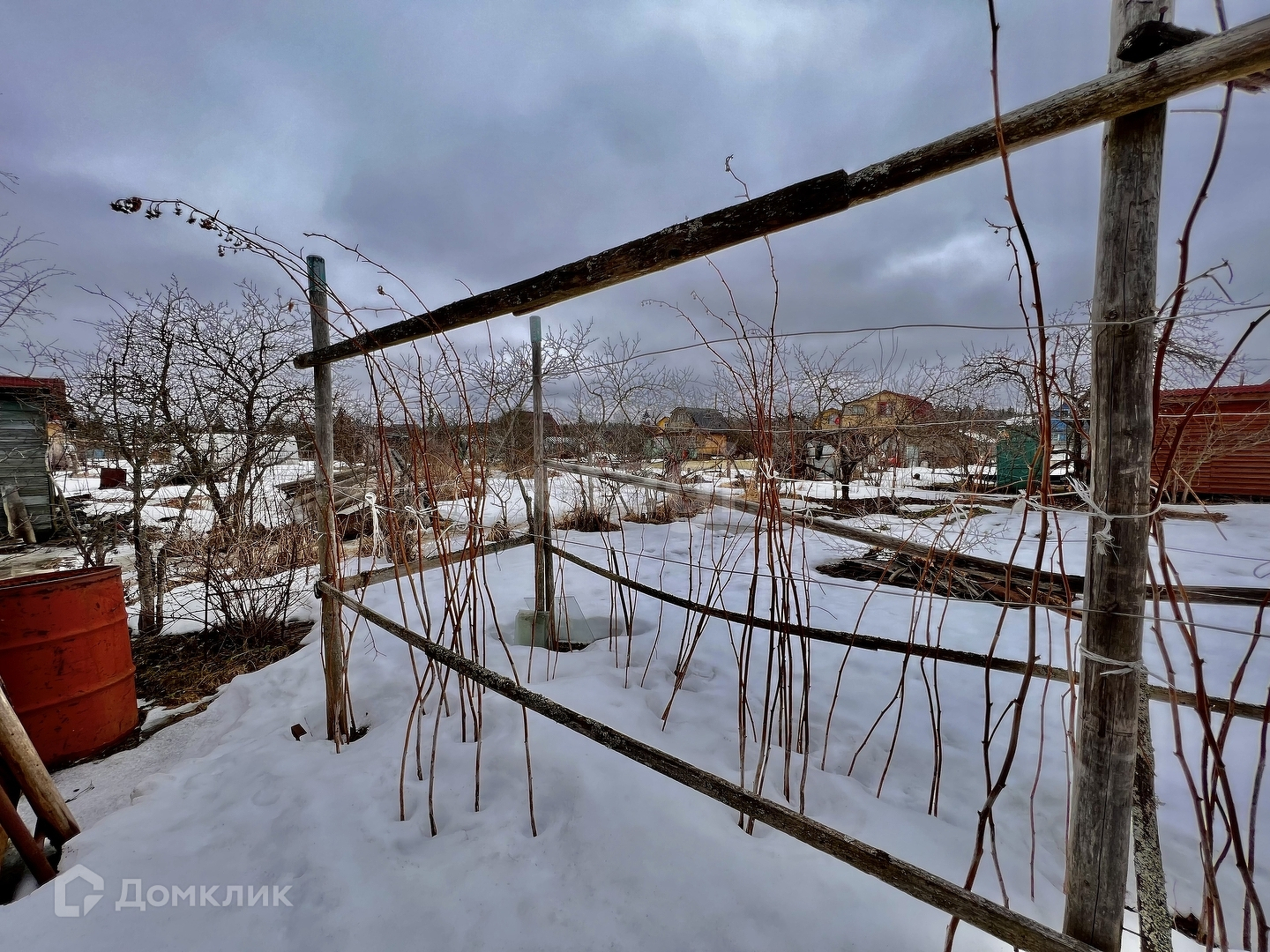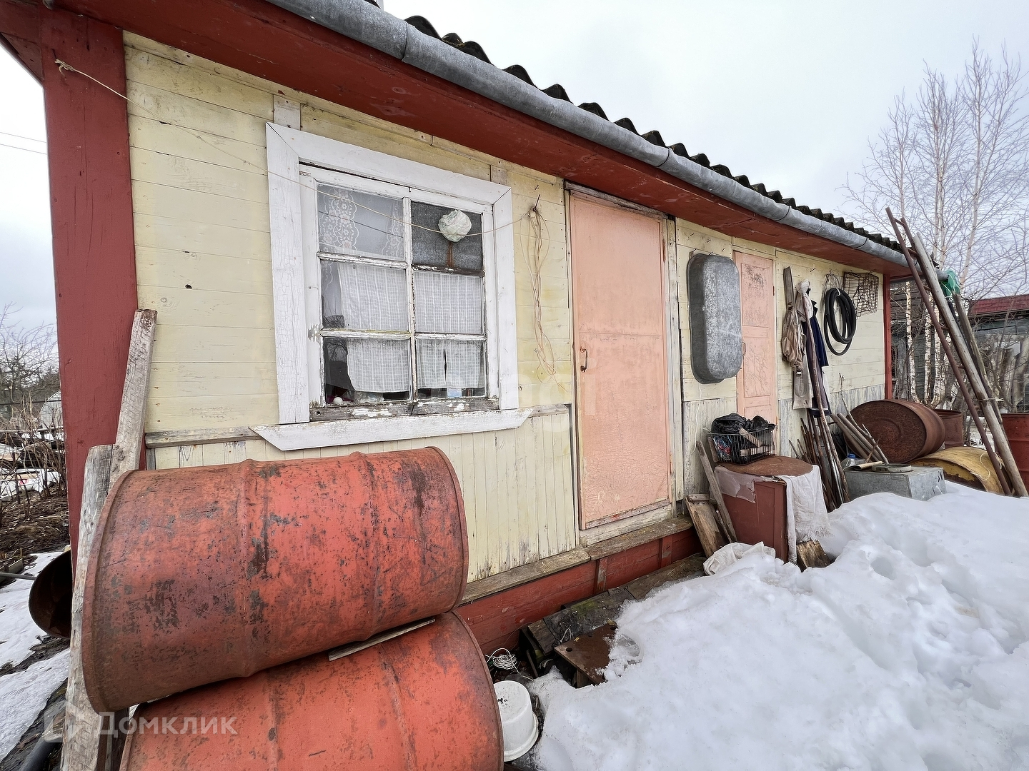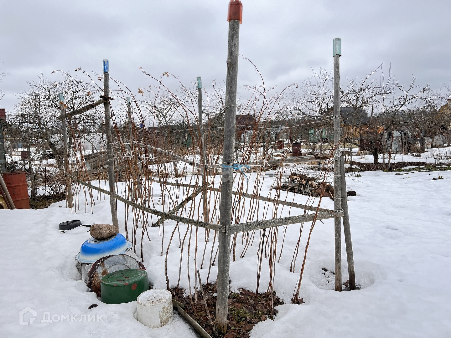 -На участке стоит летний домик. Подведен свет, отапливается буржуйкой, сухой