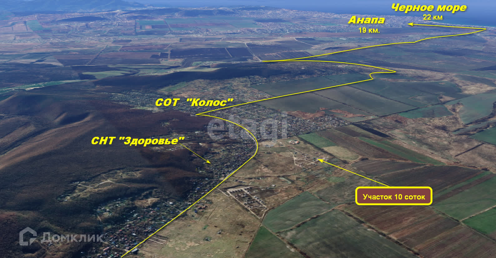 Продается земельный участок в районе СНТ «Черемушки», 19 км от Анапы и 22 км от моря по асфальтированной дороге. Участок 10 соток, правильной формы имеет 2 фасада - 25 и 40 м., не огорожен. Без насаждений и построек. Электричество в перспективе, столбы установлены. Вода – надо бурить скважину. Подъездная дорога к участку отсыпана гравием - метров 350-400 от асфальта. Регулярно ходит маршрутка в Гостагаевскую и Анапу. В СОТ Здоровье есть продуктовый и хозяйственный магазины. Юридическое сопровождение.