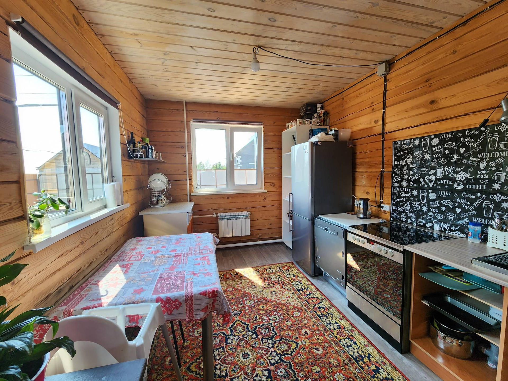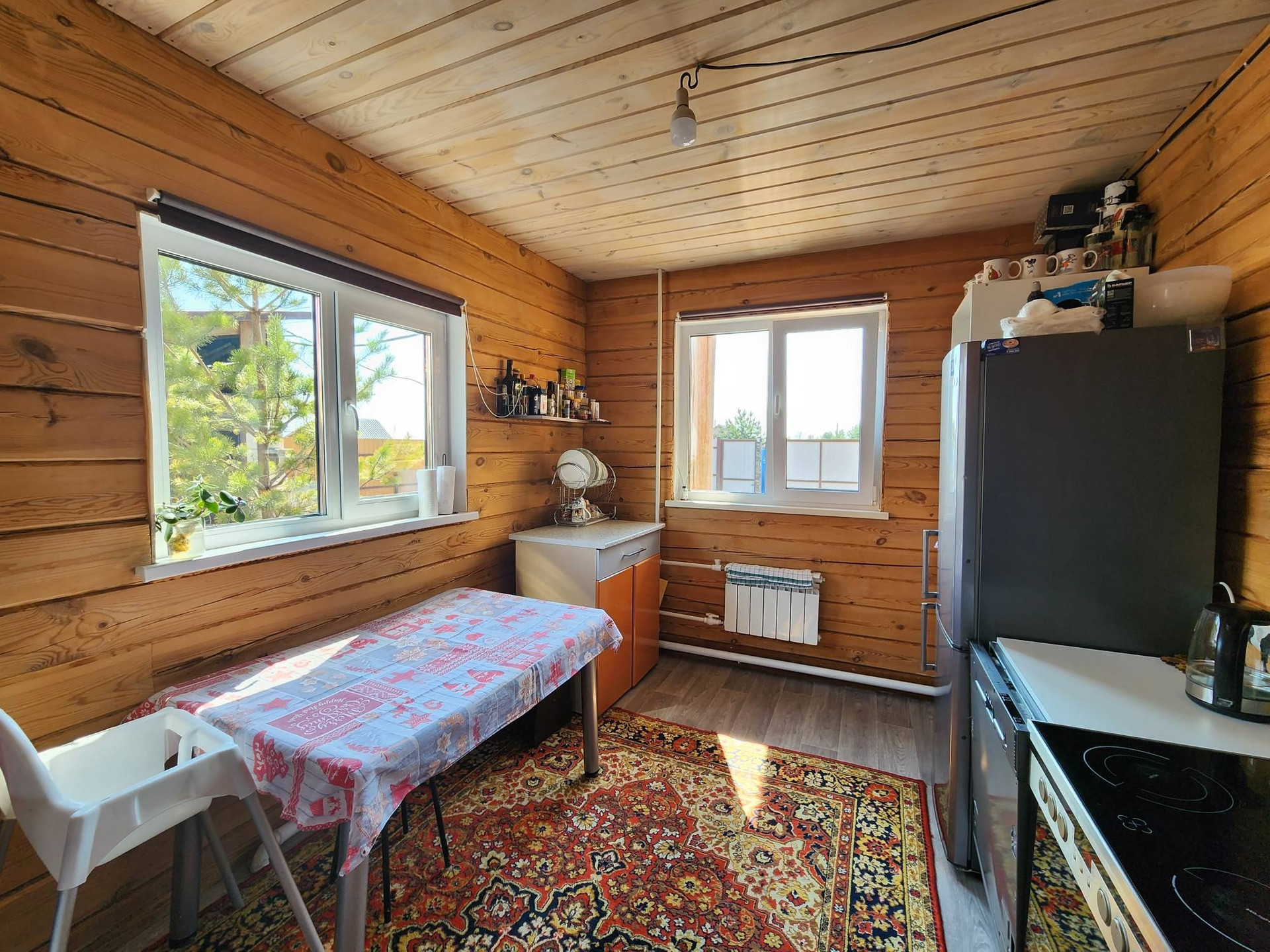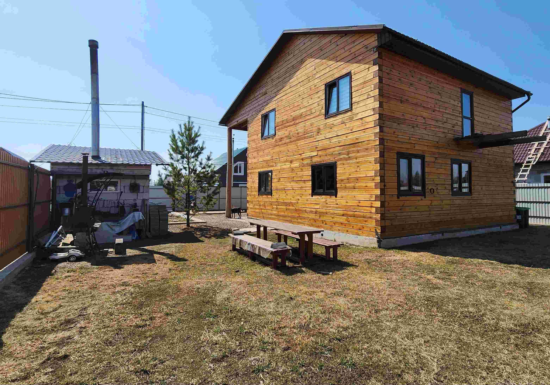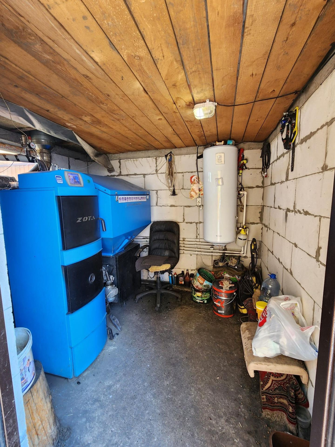 На участке расположена котельная ,комбинированный котёл с бункером . (Электро +твердотопливный) управлять можно с телефона регулировка температуры .