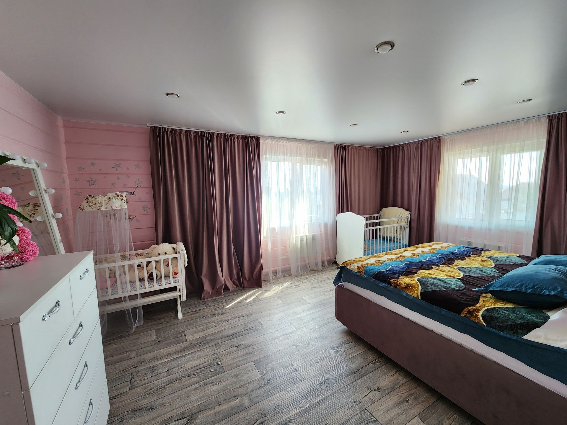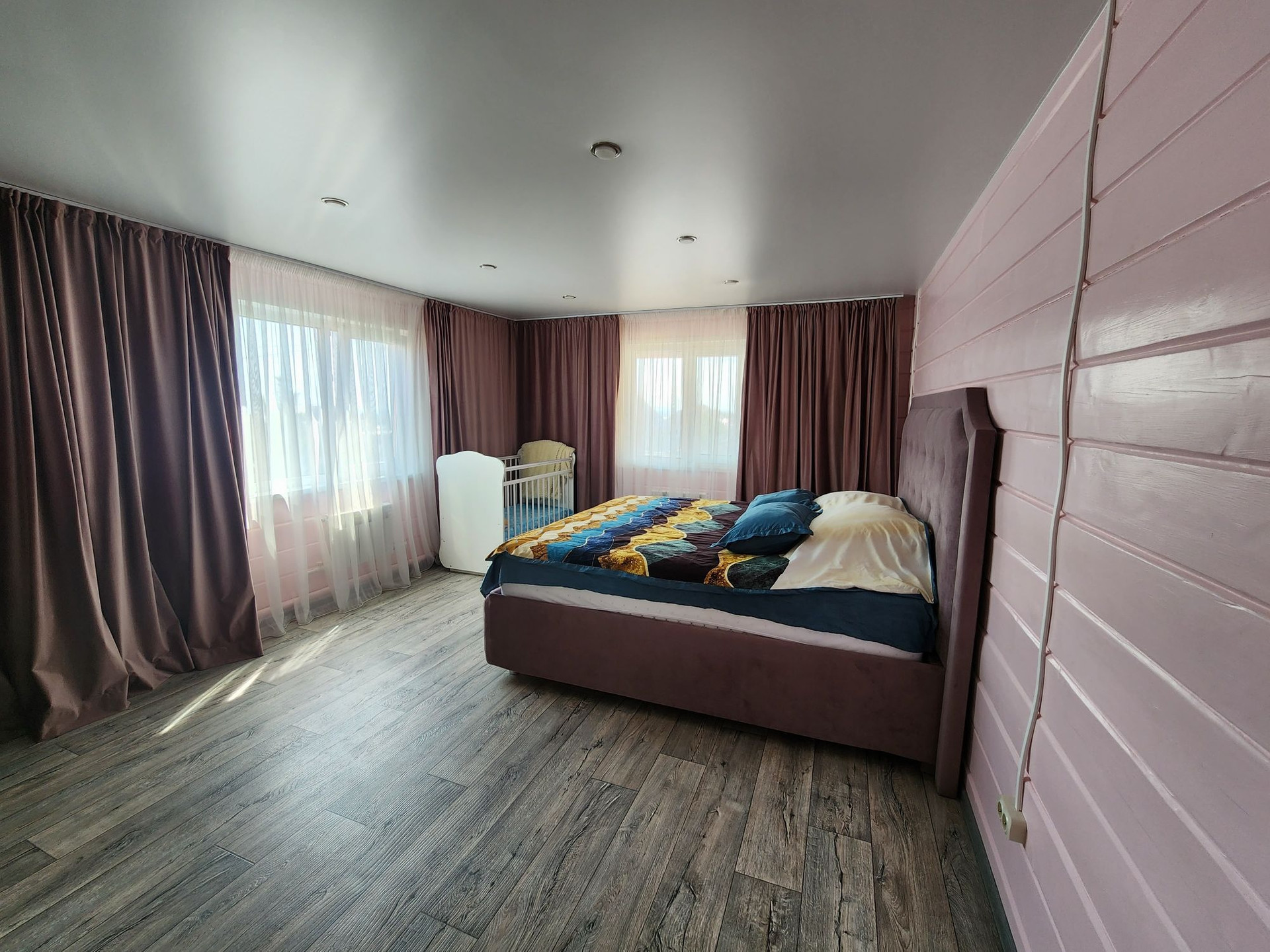 В доме 6 комнат + гардеробная, 4 спальни на втором этаже +1 свободного назначения , первый этаж большая гостиная, кухня , гардеробная, ванная комната(пол с подогревом) ,прихожая.