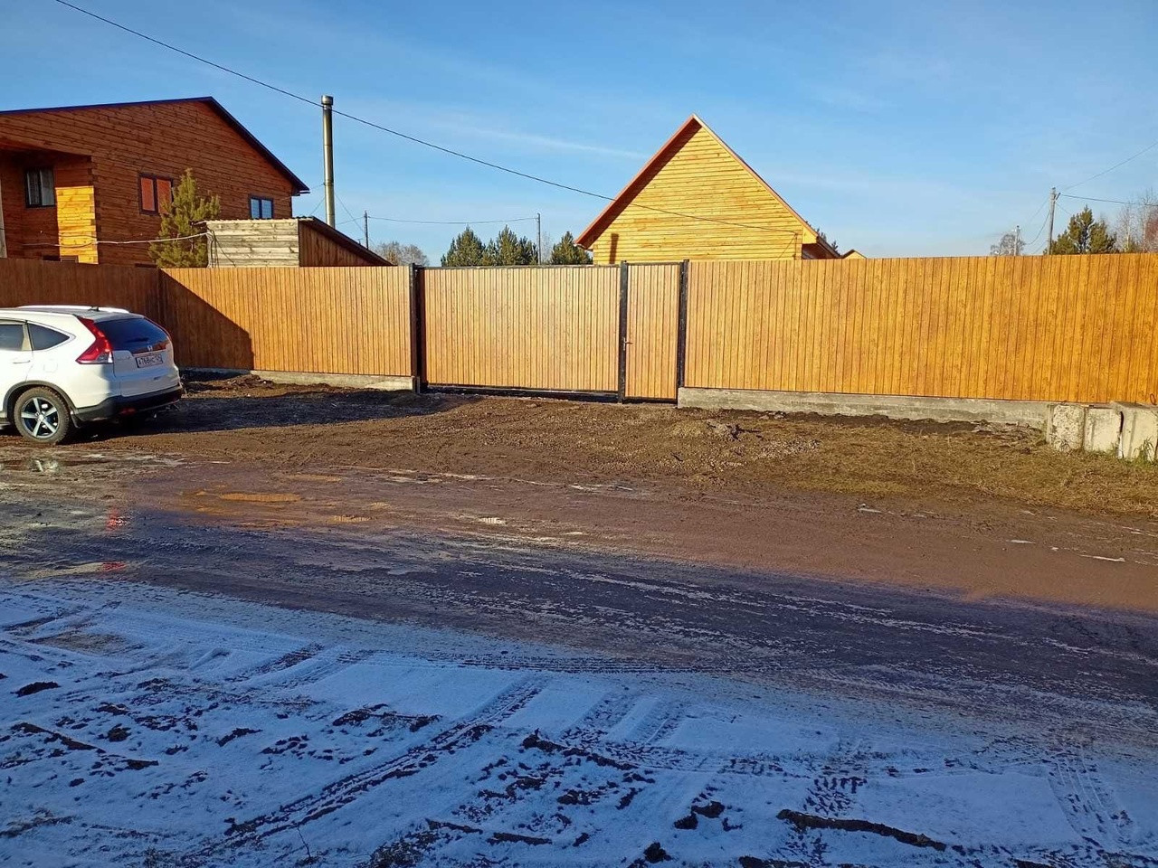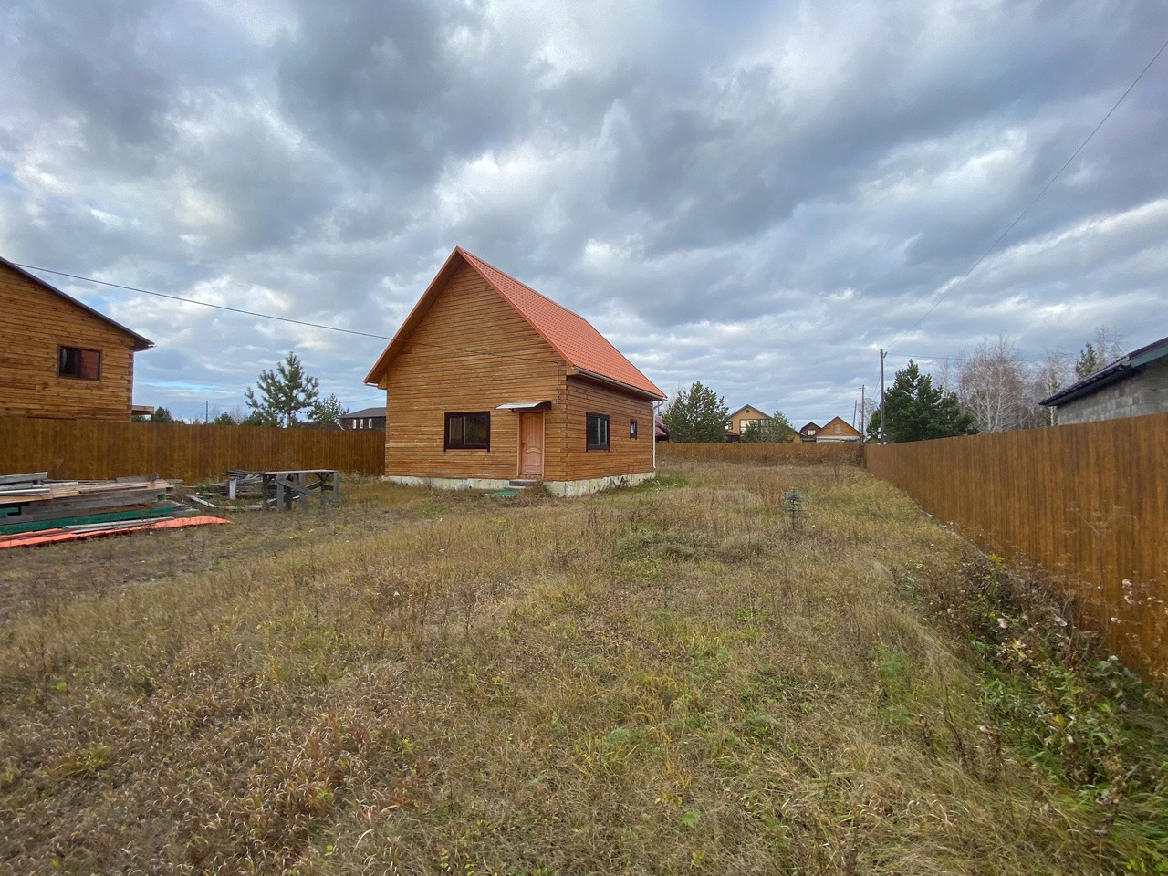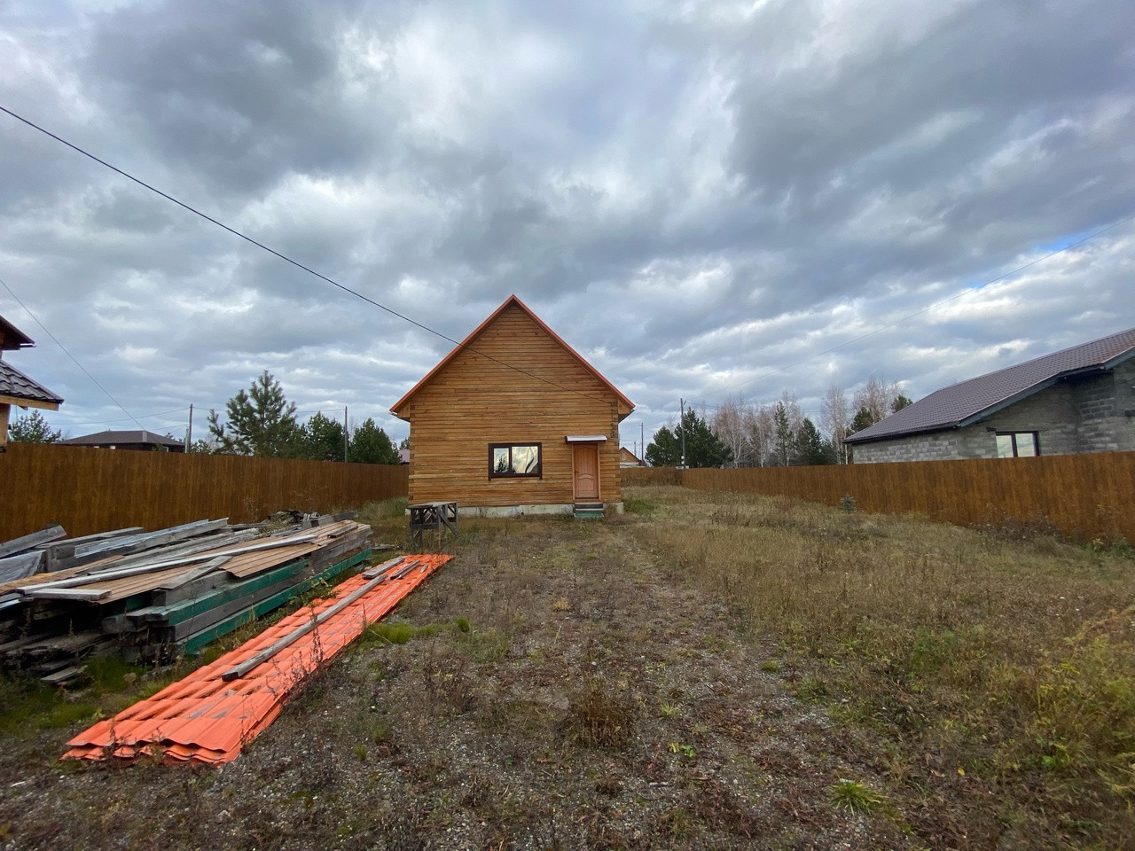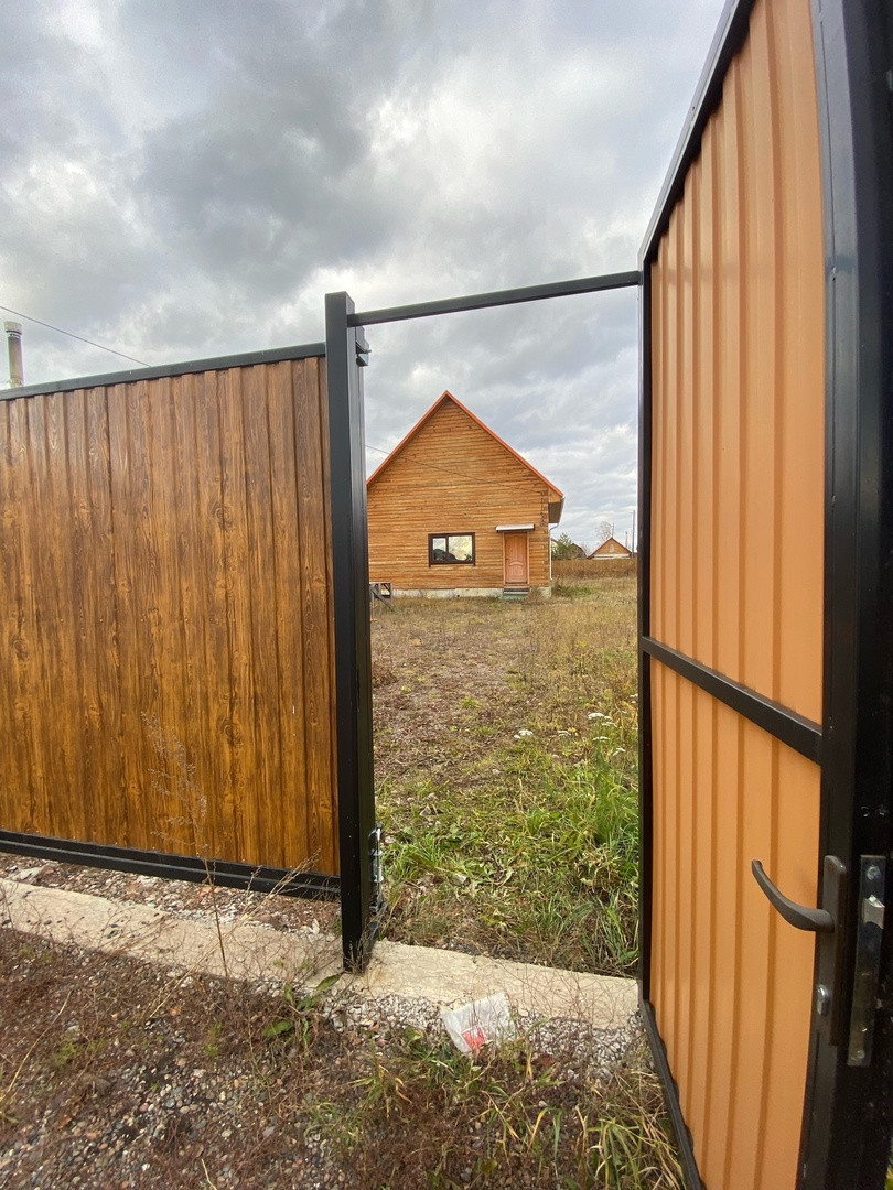 Дом из бруса. Отопления нет. Участок ровный, 11 соток. Хороший забор из профлиста, автоматические откатные ворота.