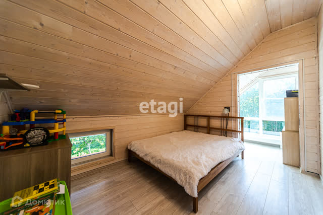 На втором этаже: - Небольшая кладовка площадью около 2-3 кв.м. - Детская комната с игровой зоной, укомплектованной панорамными окнами, и спальной зоной. - Спальня также с панорамными окнами и уютной гардеробной. - Отличное состояние тёплых полов на первом этаже и дизайнерских радиаторов под панорамными окнами на втором этаже.