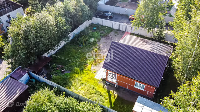 Расположен в тупике улицы, что означает отсутствие автомобильного трафика. Есть место для постройки бани в одном углу участка, а в другом растут белые грибы. С другой стороны посажены различные ягодные кусты. На участке также имеется бытовка и каркасный навес, который можно использовать в качестве летней площадки.