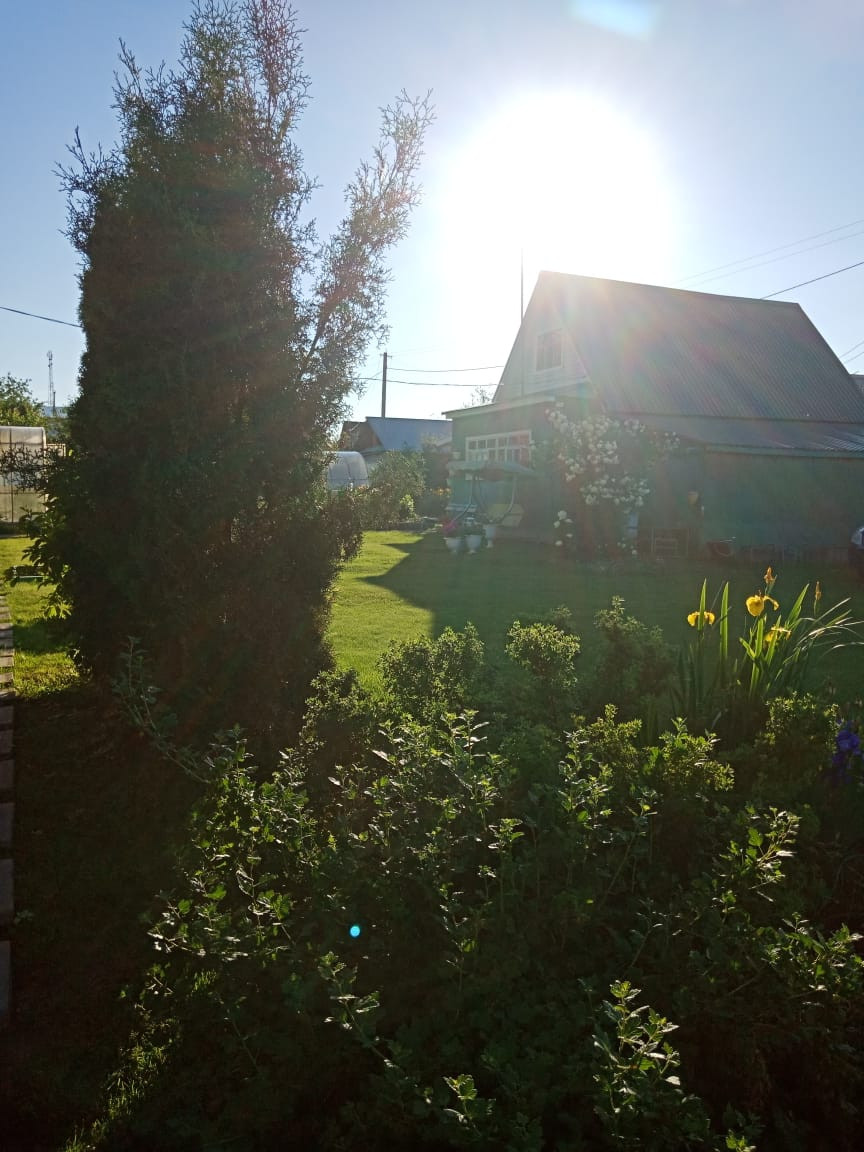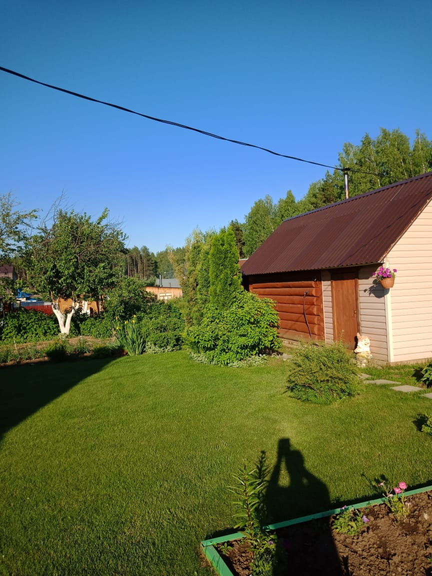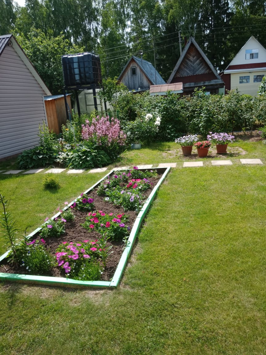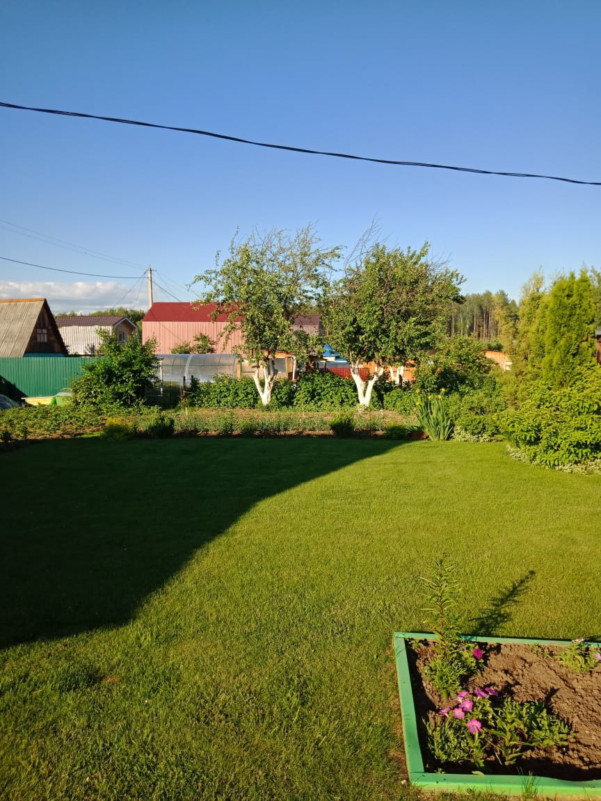 Участок ухоженный, есть газон для отдыха, много посадок, и цветов.