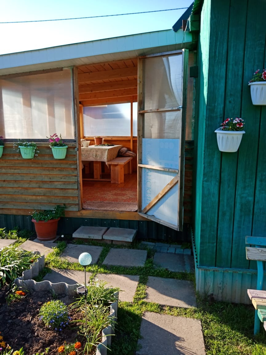 Дом из бруса,  на фундаменте S 5х5. Отапливается печью.Второй этаж мансарда утепленная и община вагонкой, к дому пристроена веранда S3х5 утепленная, беседка большая на железных сваях,  из дерева.