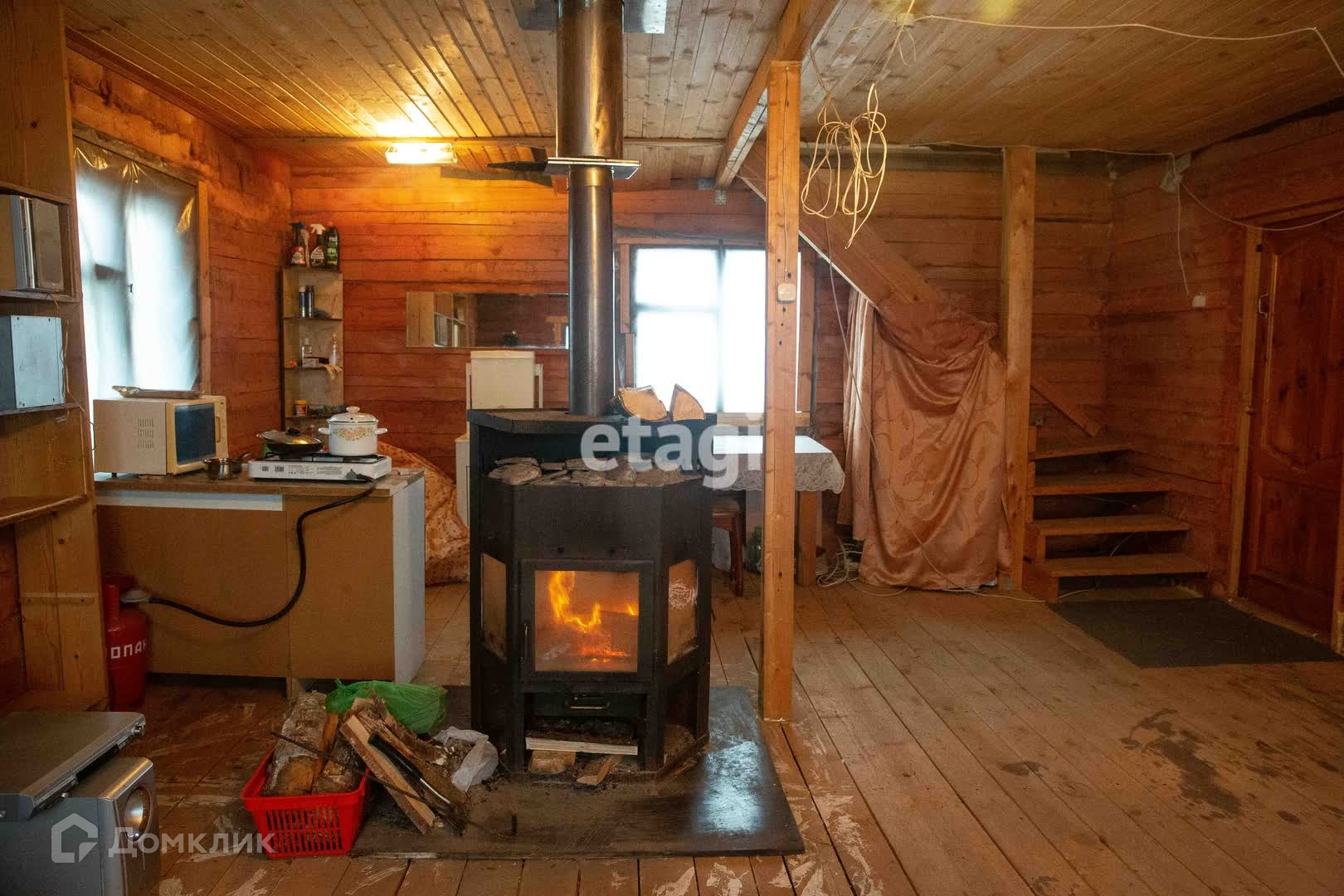 В доме можно жить как летом, так и зимой. Отопление - камин, отлично справляется со своей задачей.