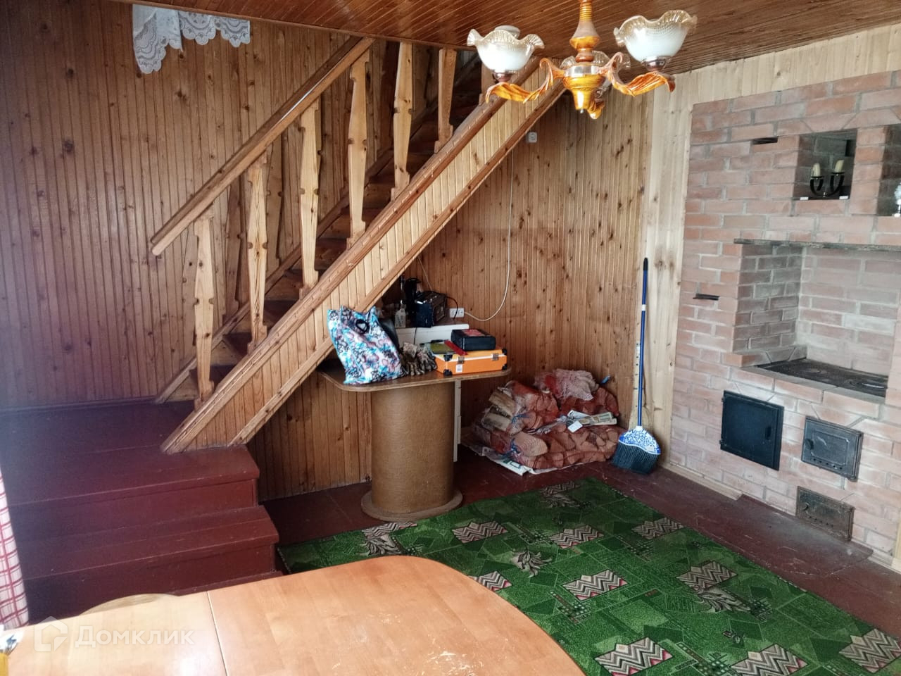 На первом этаже: расположена прихожая,  просторная кухня с печкой, большая гостиная.