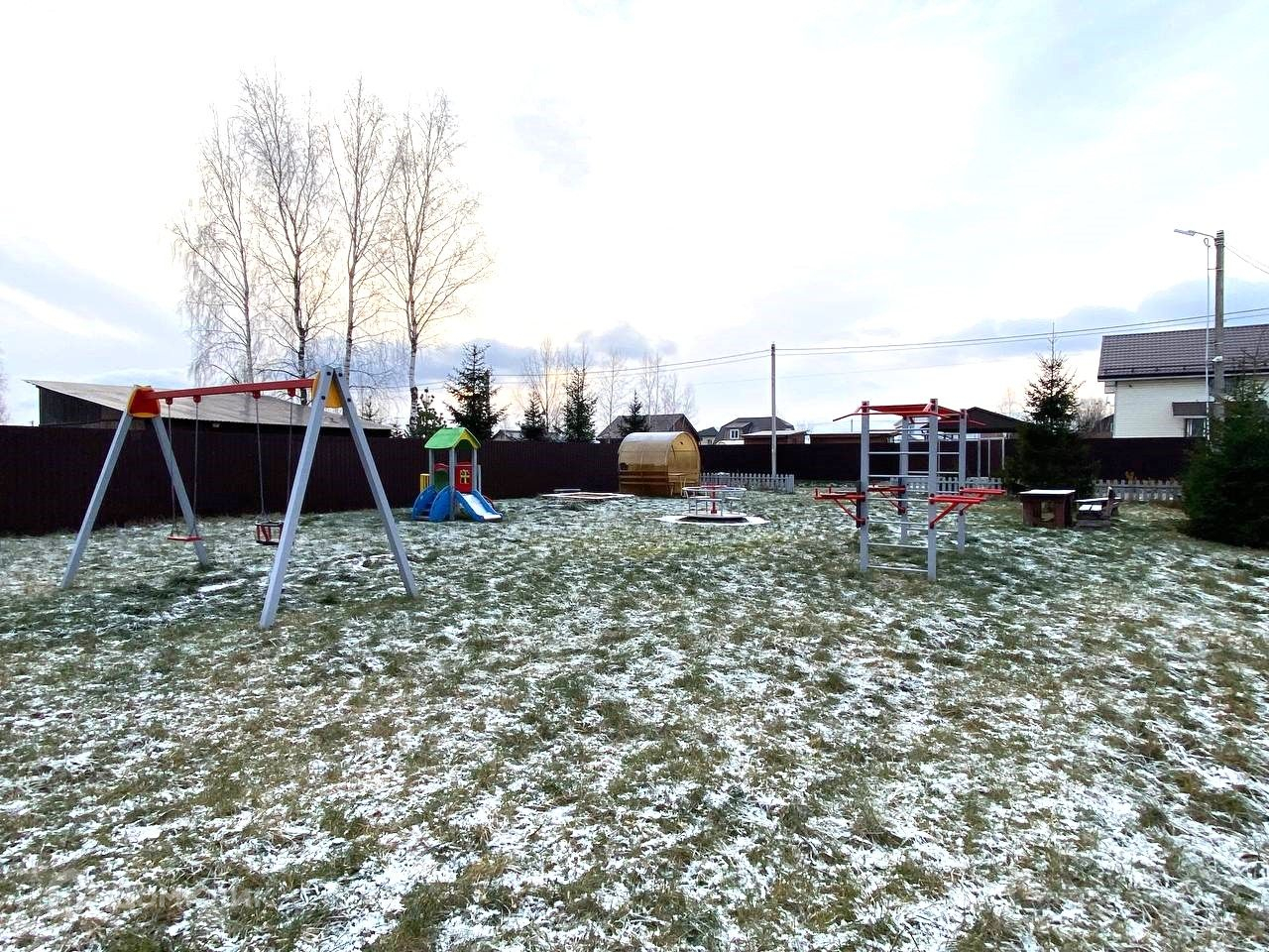 Участок сухой, правильной формы,  с одной стороны уже возведен соседями забор из профлиста. Круглогодичный асфальтированный подъезд, электричество подключено (есть счетчик), ежемесячные взносы 1000 рублей, въезд через шлагбаум по пропускам.
