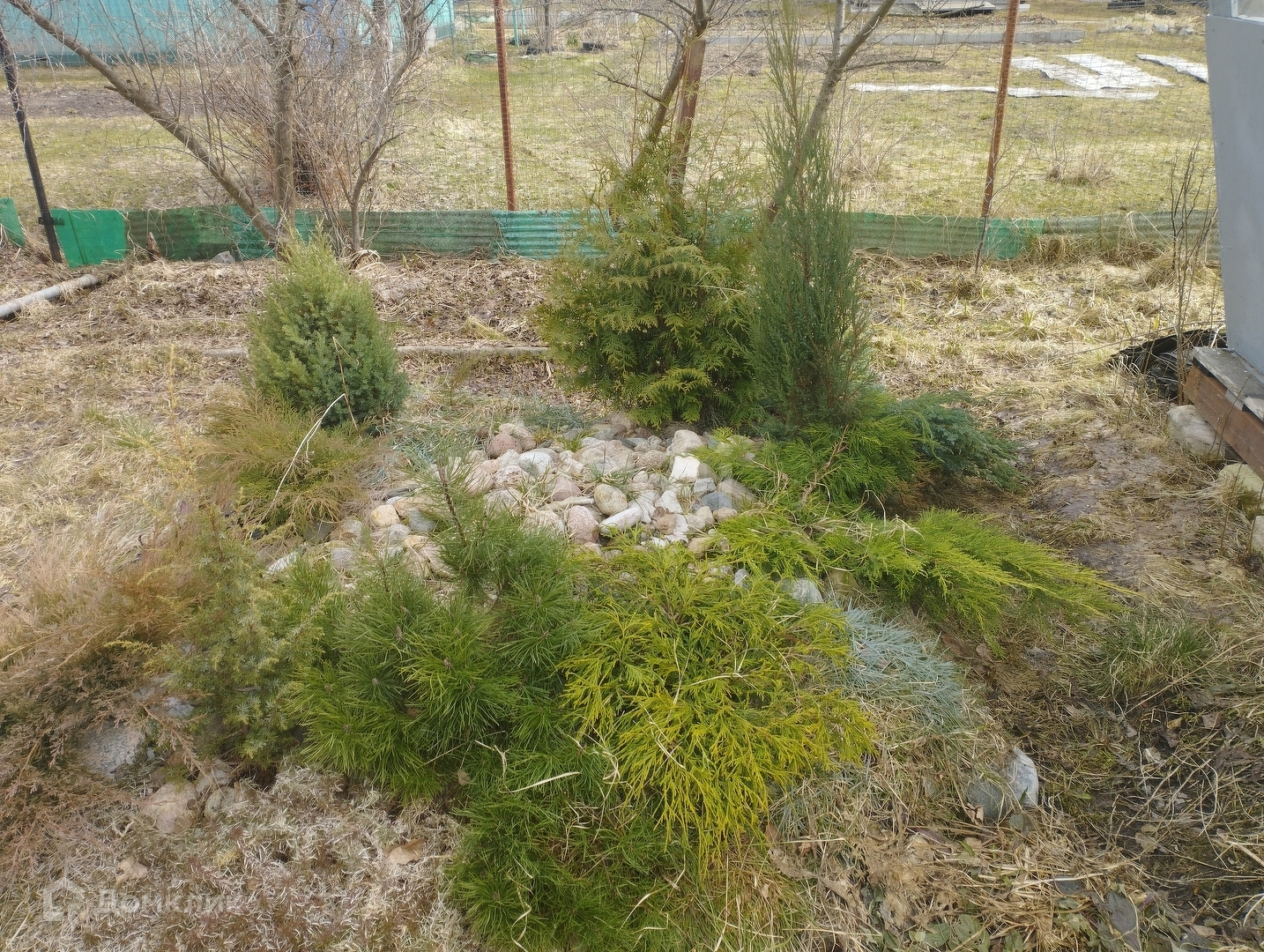 Участок украшает альпийская горка из хвойных.