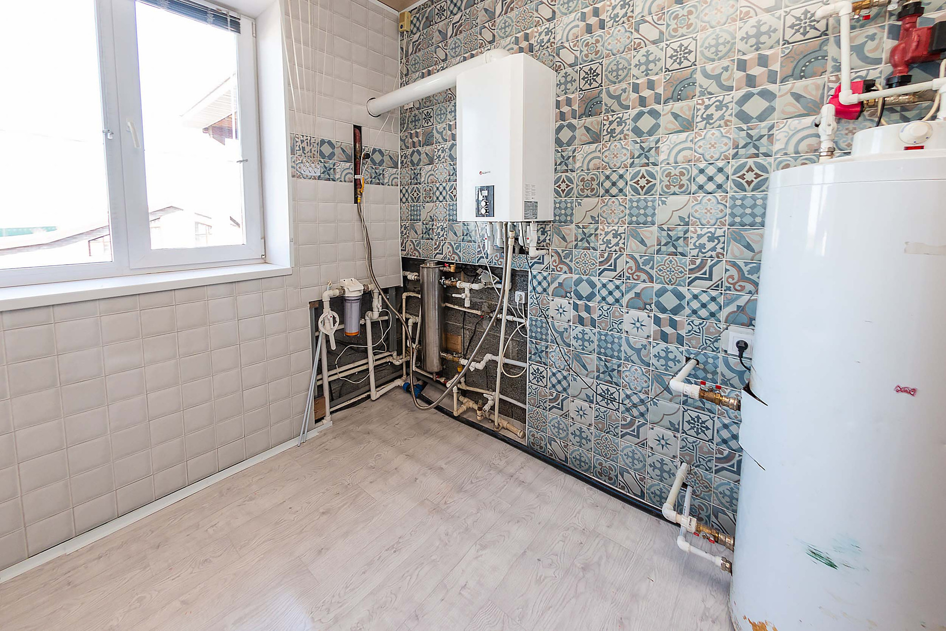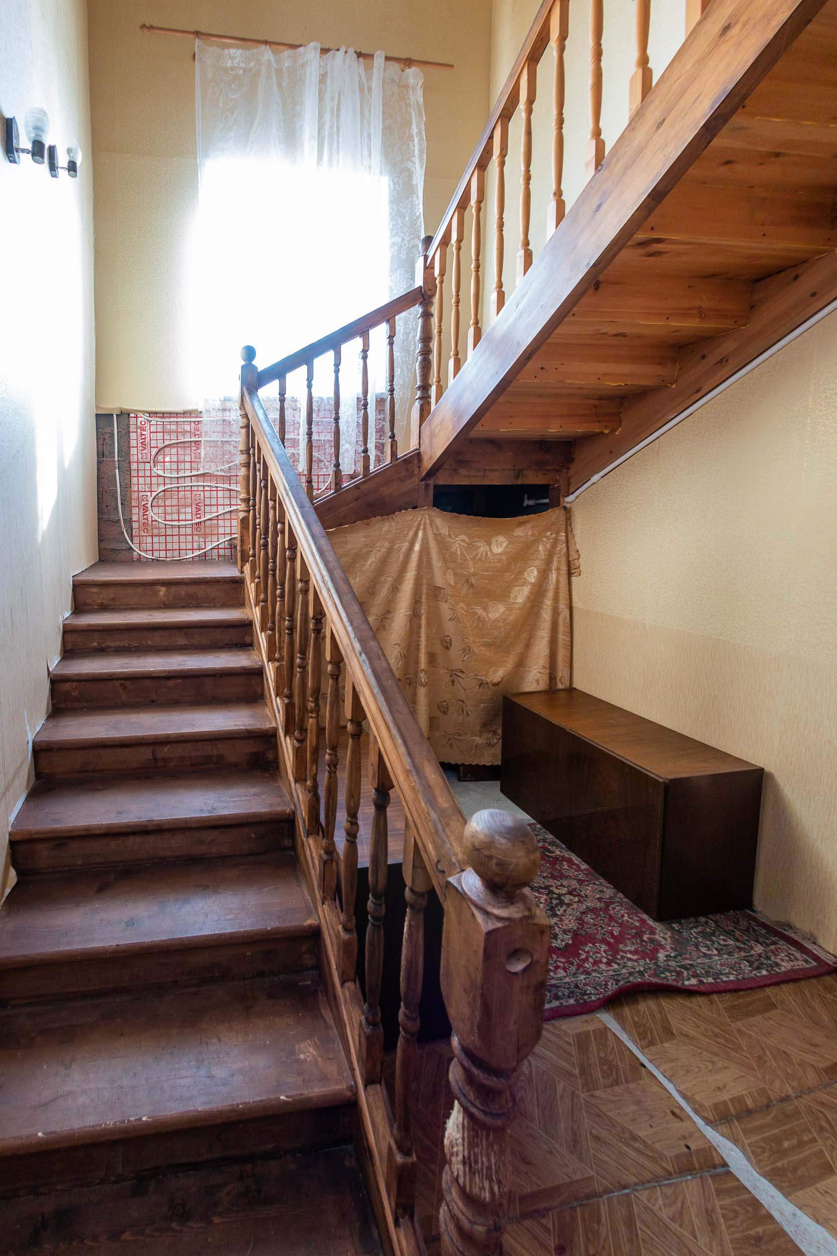Во всем доме на первом этаже сделаны тёплые полы, на втором – радиаторы.
