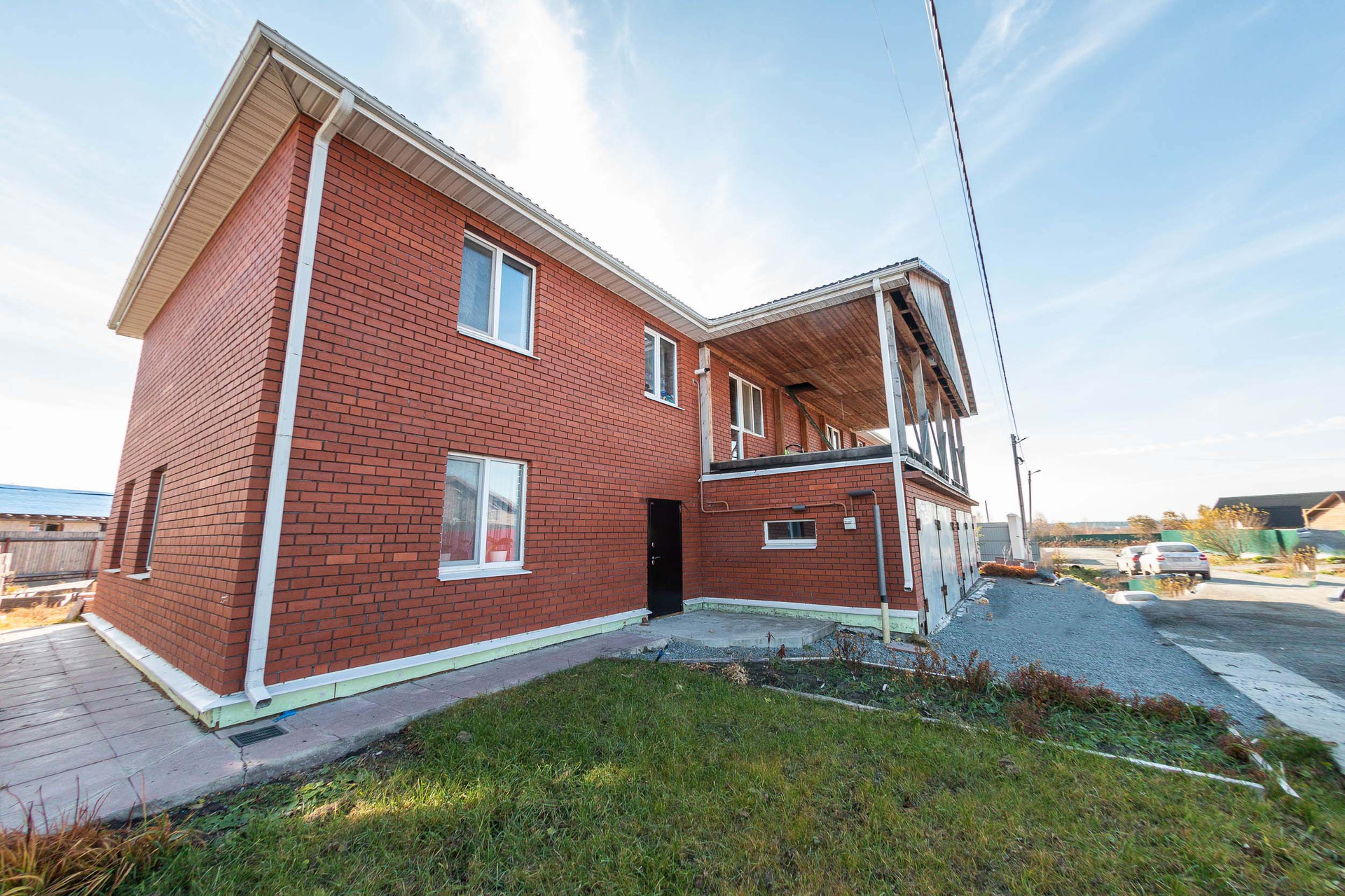 На участке перед домом парковка на 5 машин.