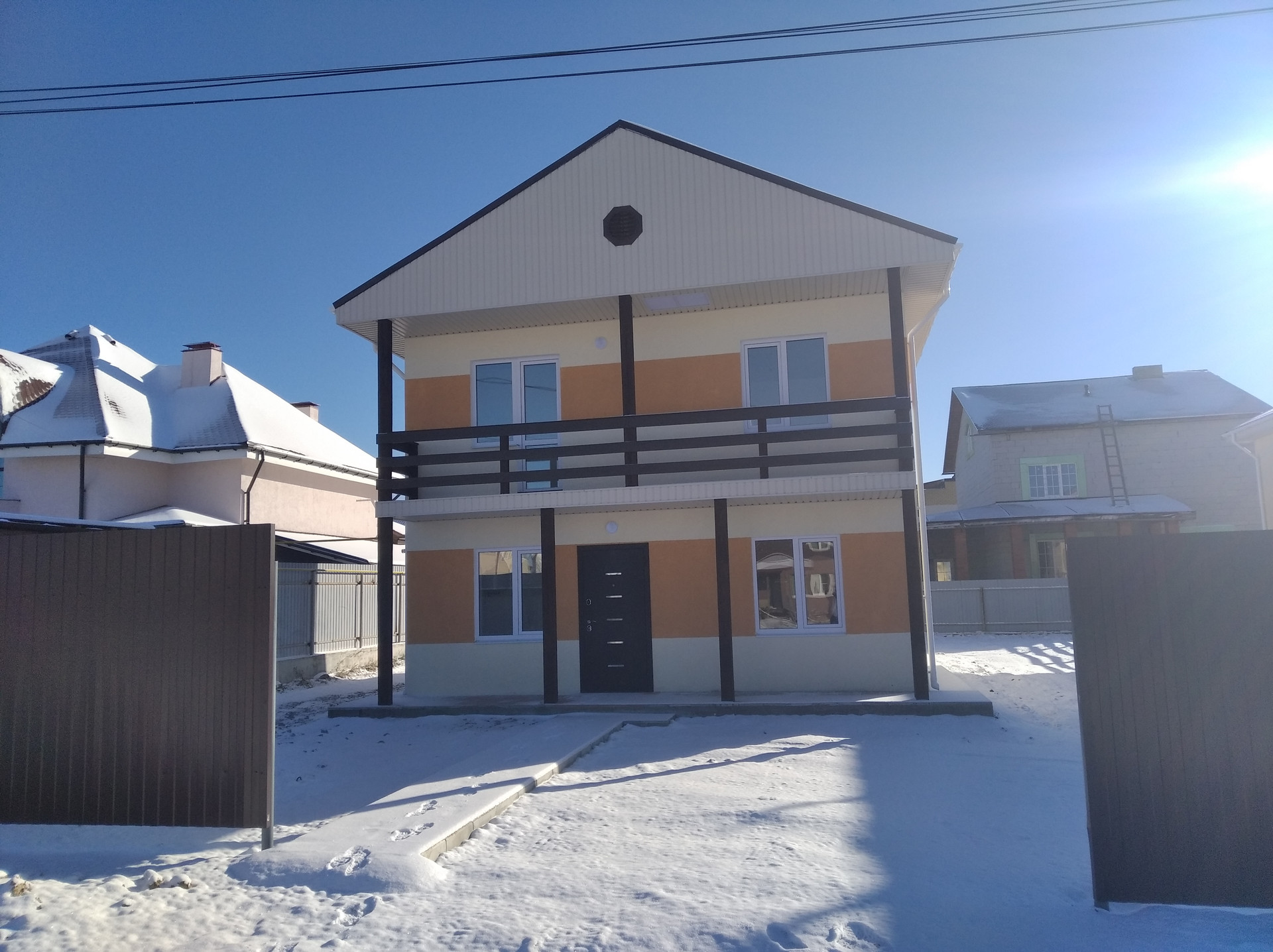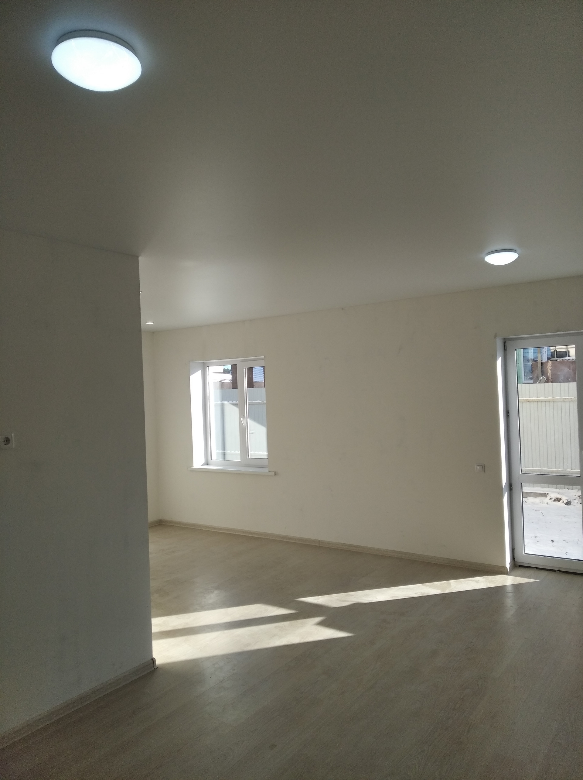 Отделка чистовая (ламинат, керамогранит, обои, отделка санузла), натяжные потолки с встроенными светодиодными светильниками, окна - пятикамерные по ГОСТу. Отмостки. Благоустройство, Заборы.