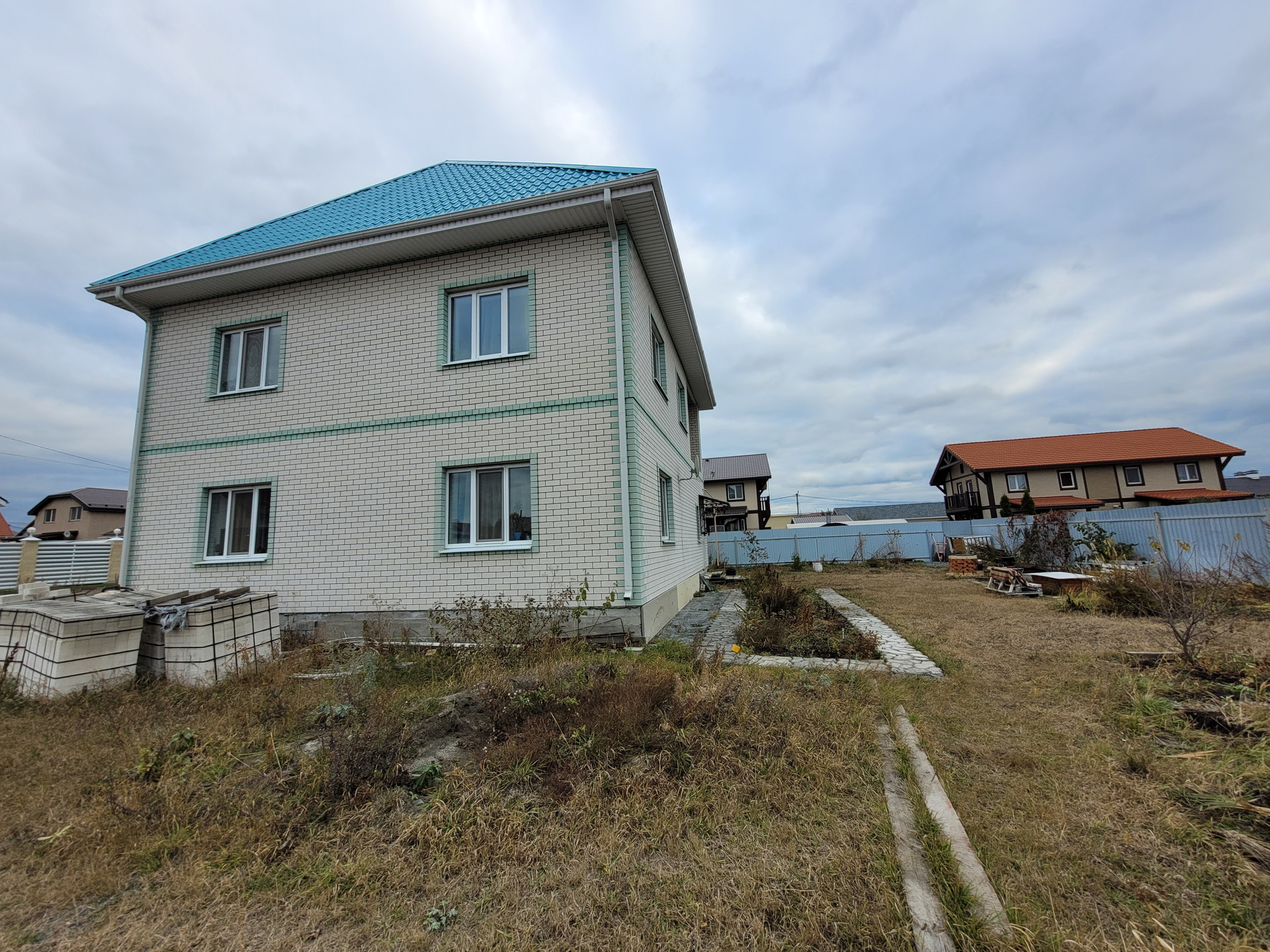 Твинблок 400 мм+ кирпич силикатный (К-Уральский), кирпич параллельно с твином крепился на пластины к нему.